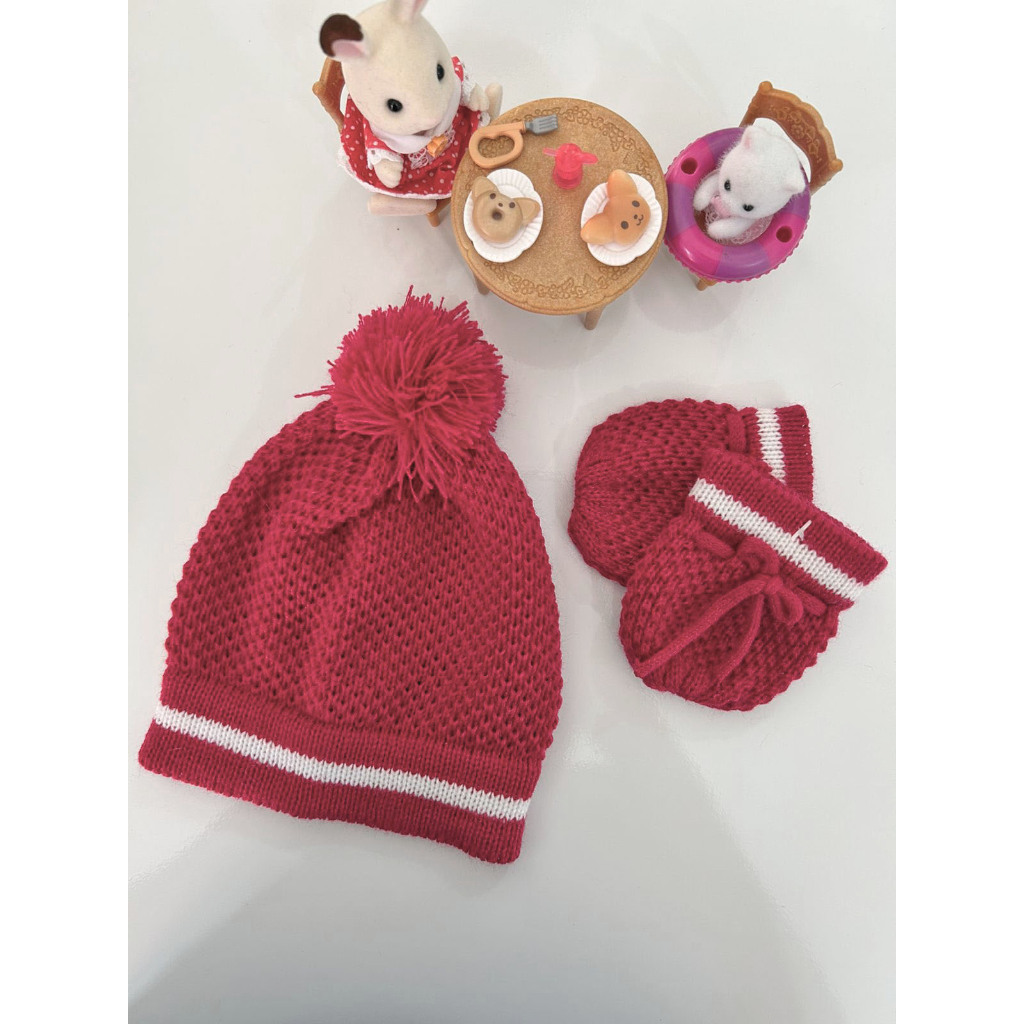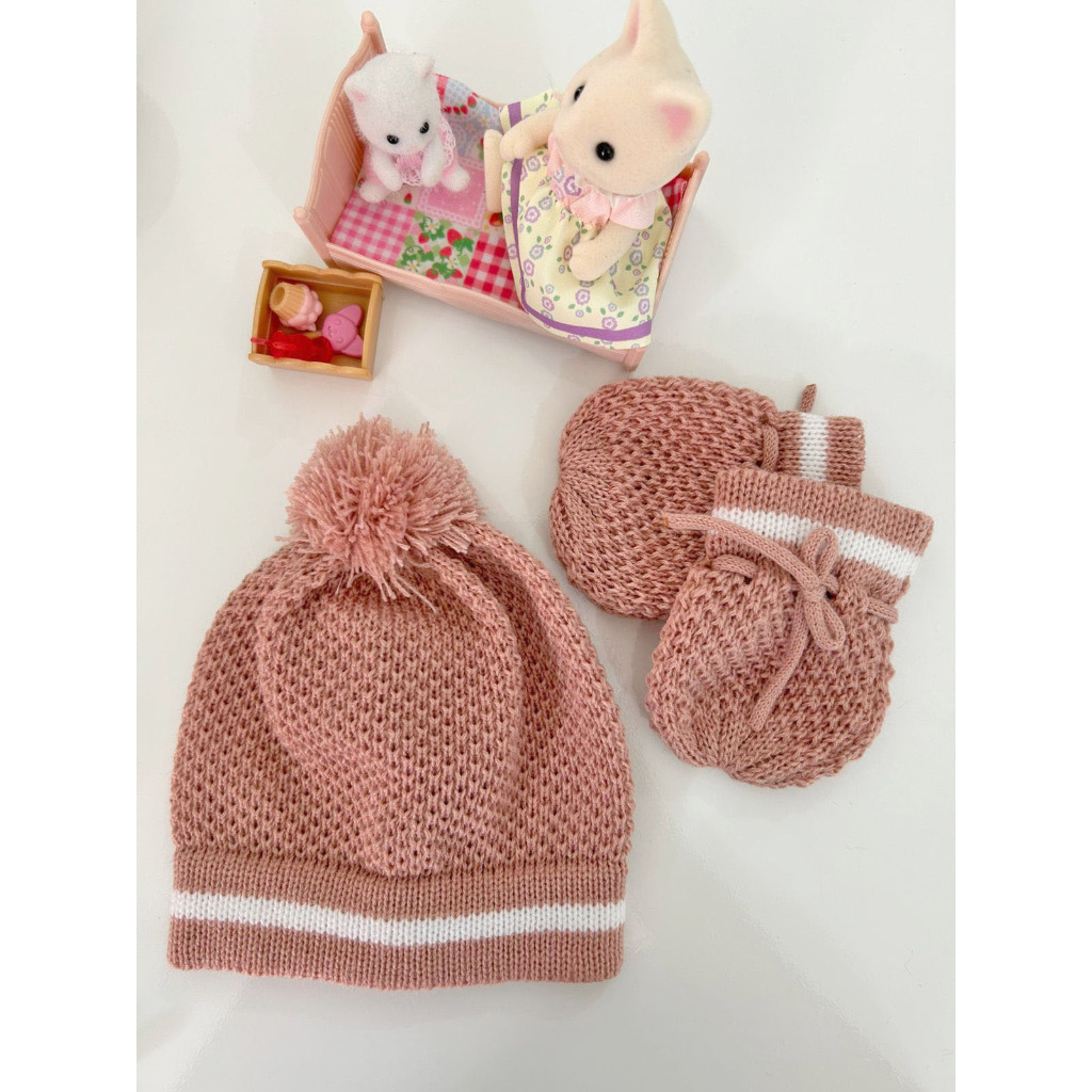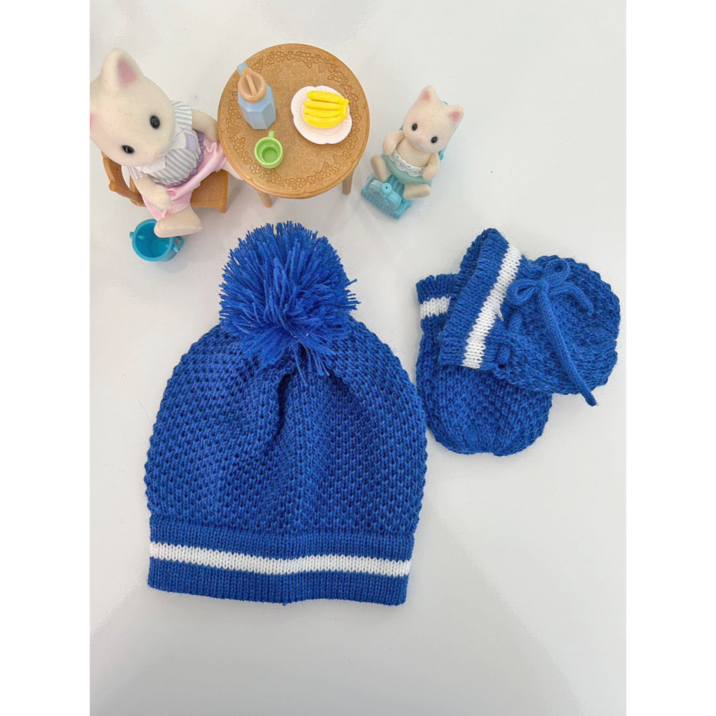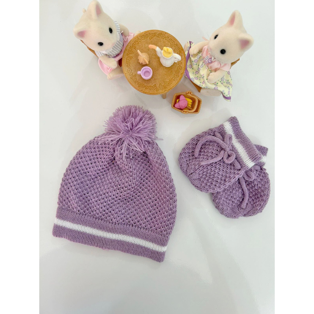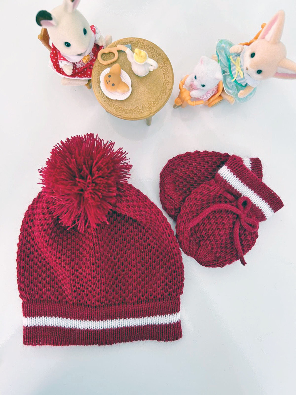 Touca e Luva em tricô para bebê 0 a 3 meses com listra