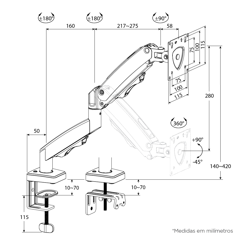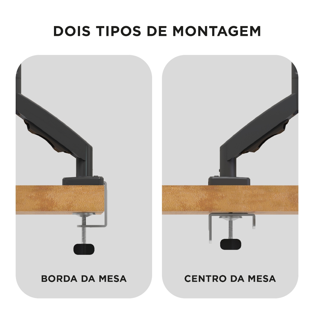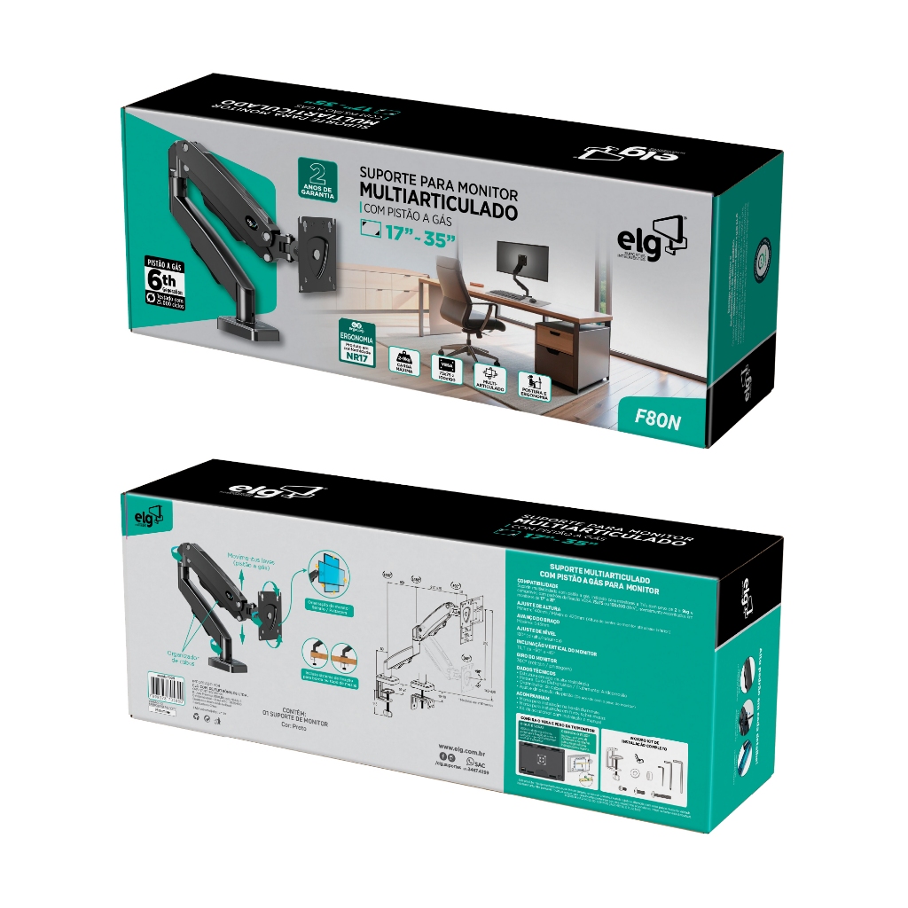Suporte de Mesa para Monitor / TV 17" até 35" até 9kg ELG F80N com pistão a gás cor cinza.