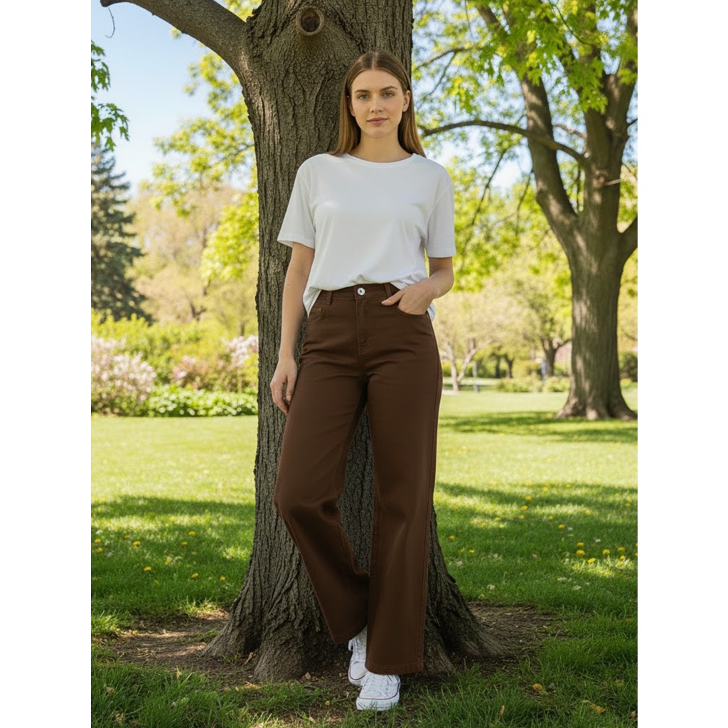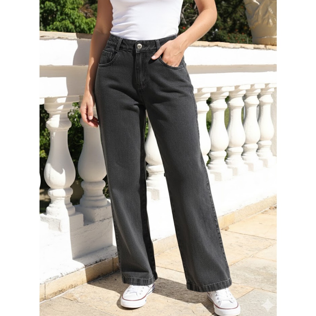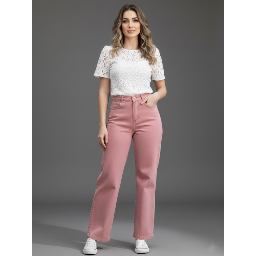 Calça Jeans Feminina Cintura Alta Pantalona Moda Atual