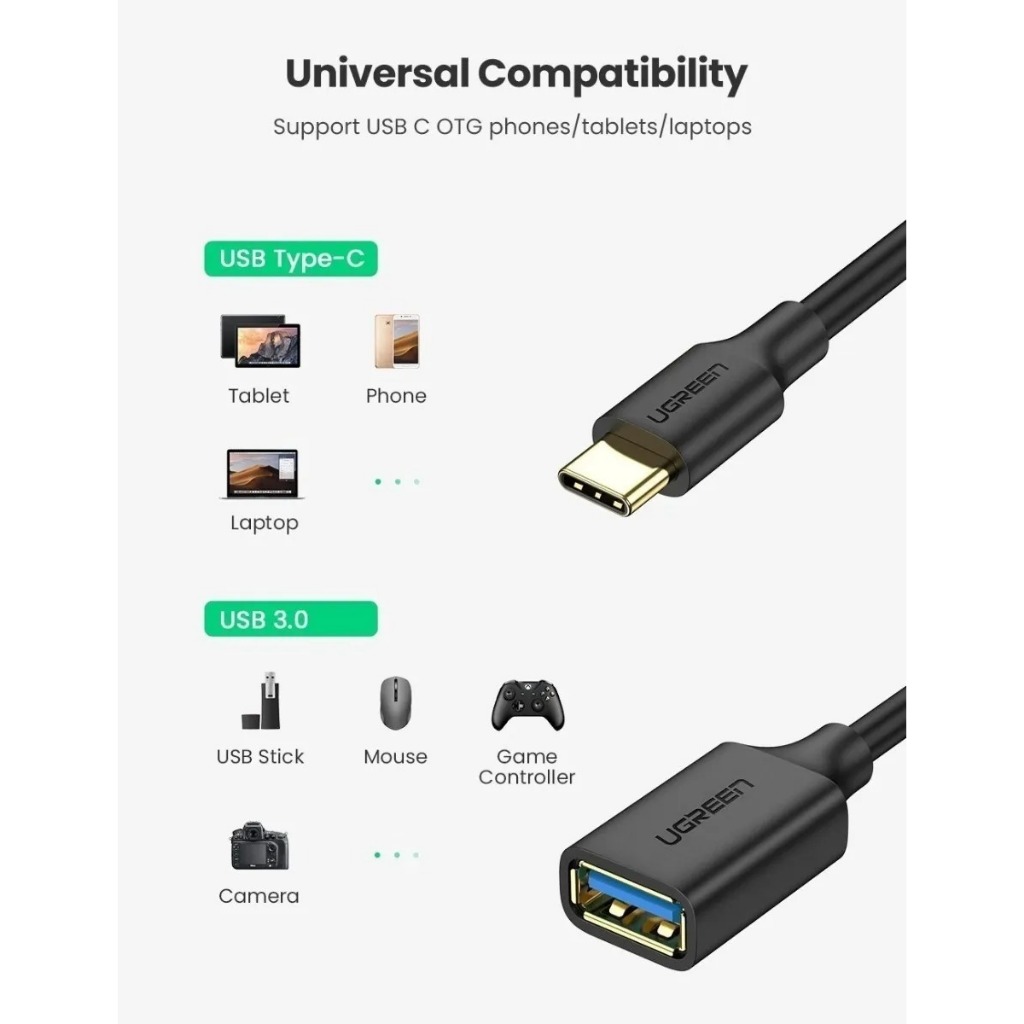 Ugreen - Cabo Adaptador Otg Usbc Macho Tipo C X Usb 3.0 A Fêmea