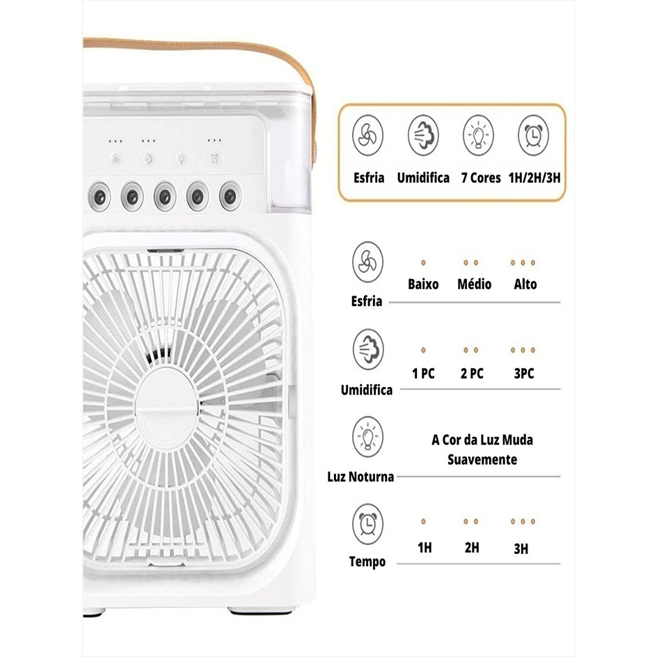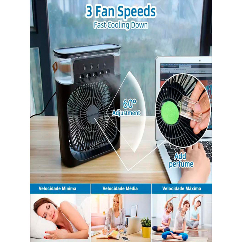 Ventilador Refrigerador De Ar Condicionado Umidificador USB Portátil Com Led Reservatório De Água