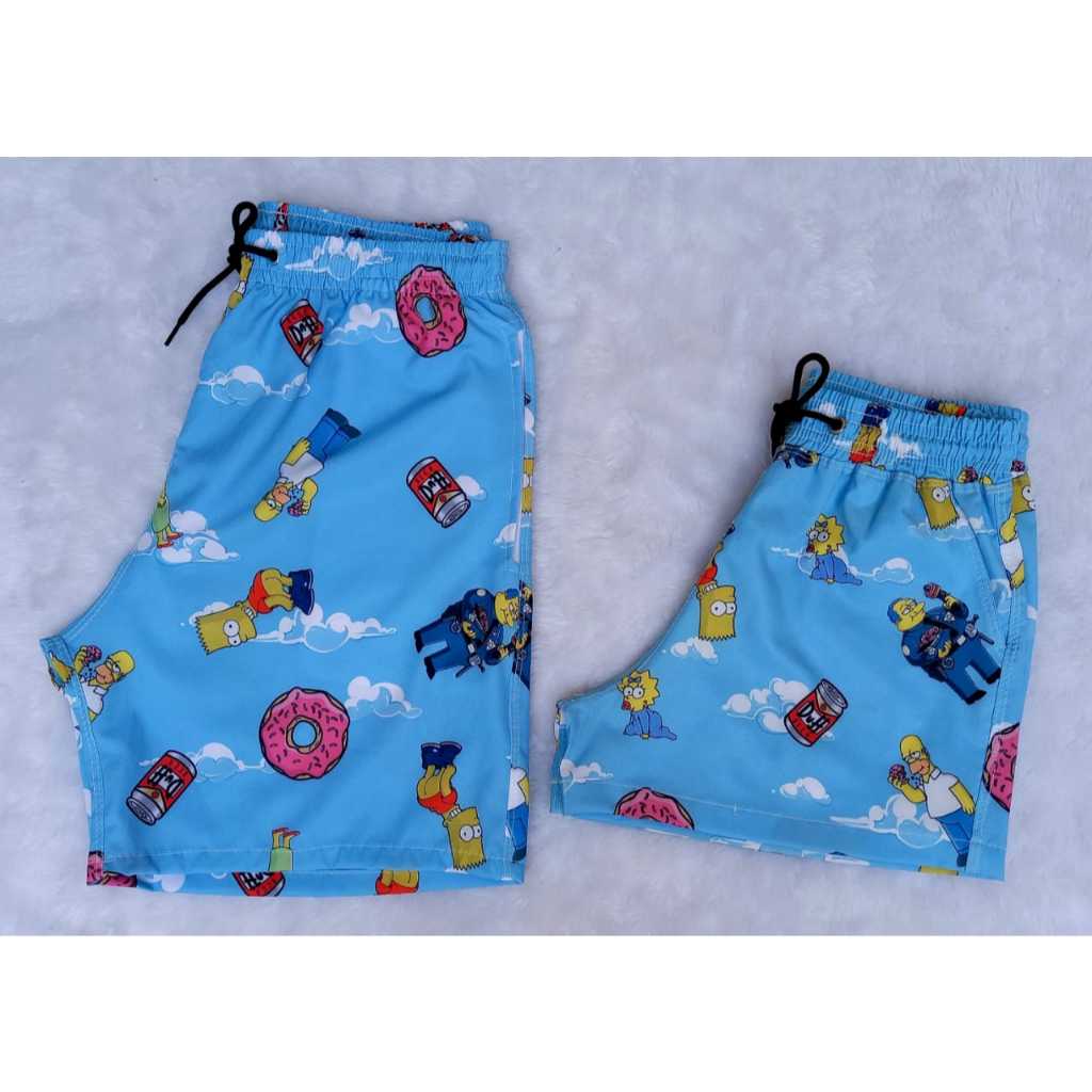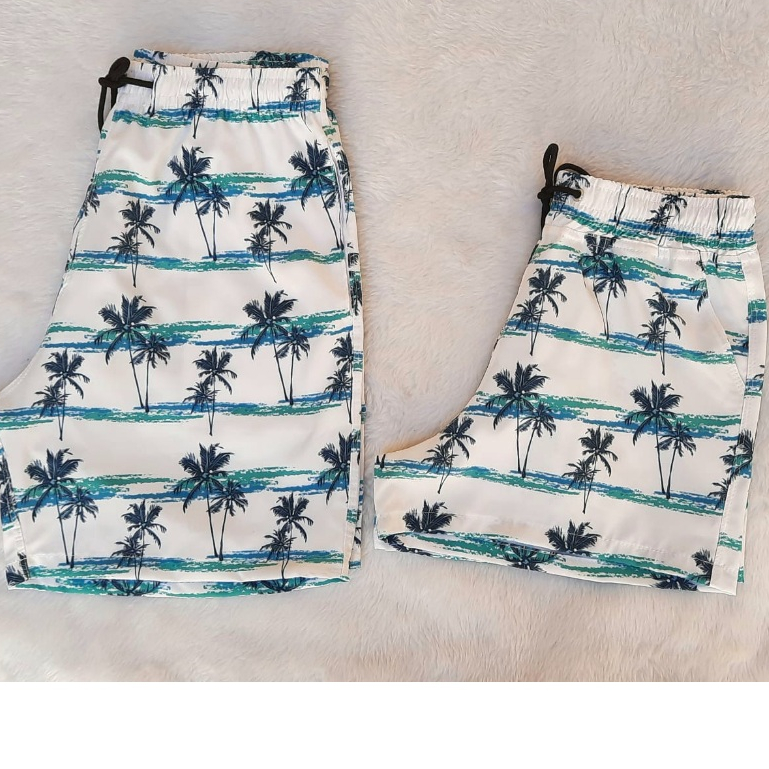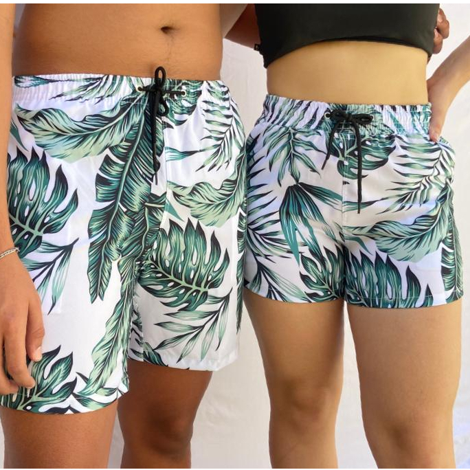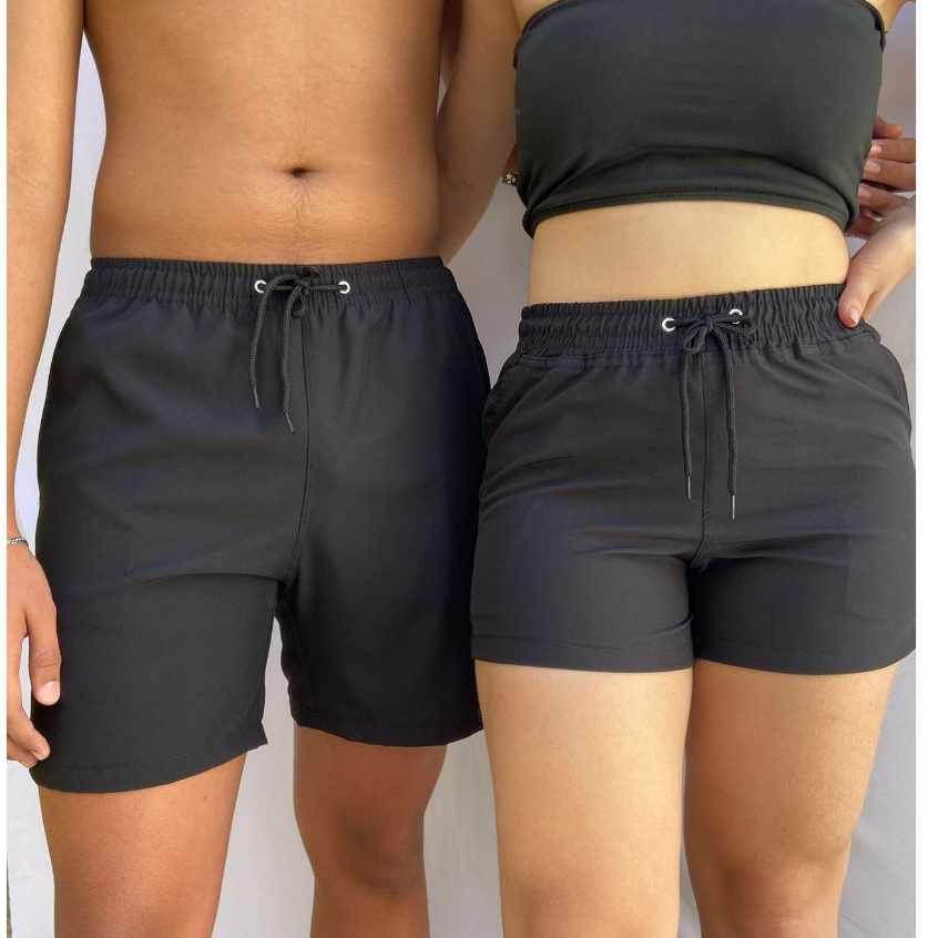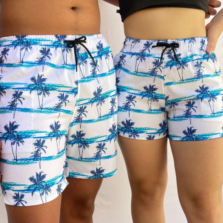 Kit Combinadinho Short Casal Mozão Bermuda Tactel Com Elastano Moda Praia Verao Piscina Namorados