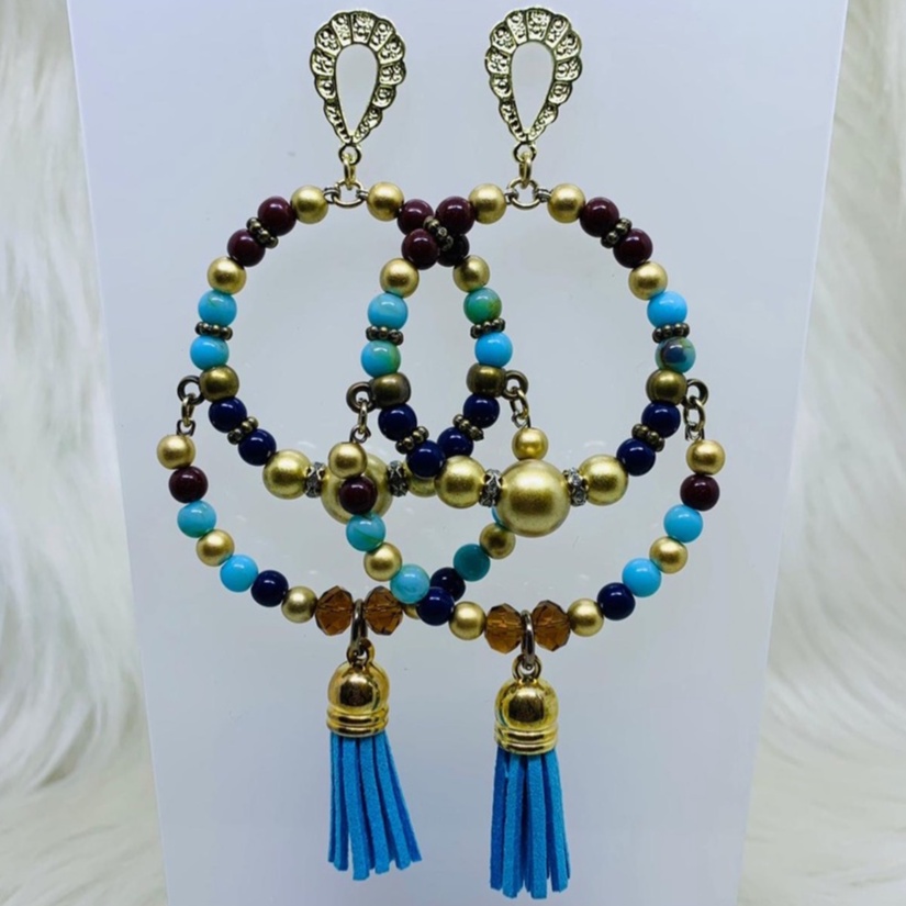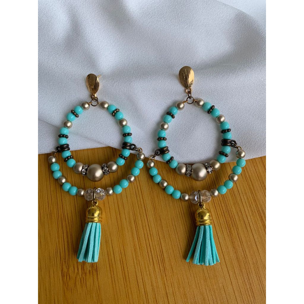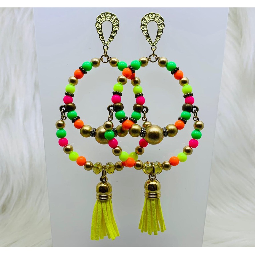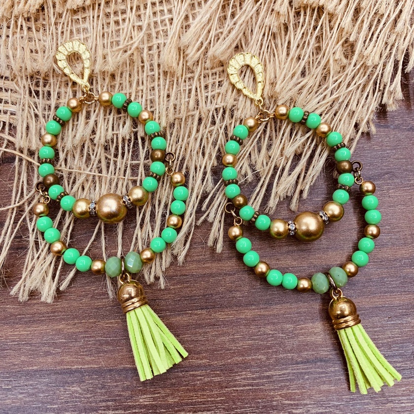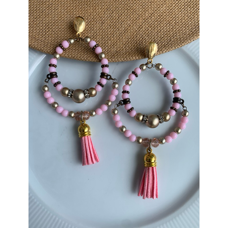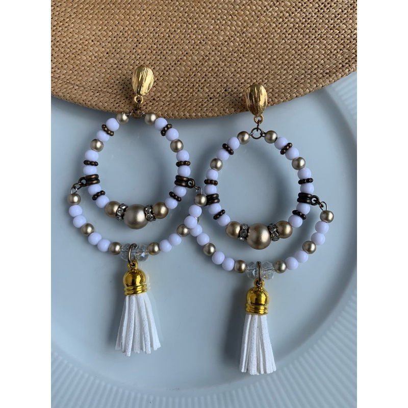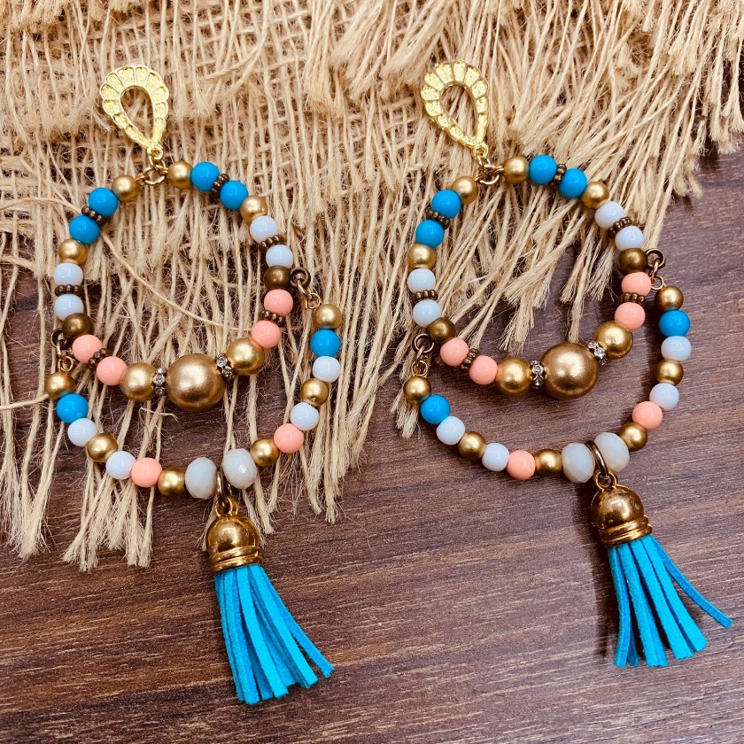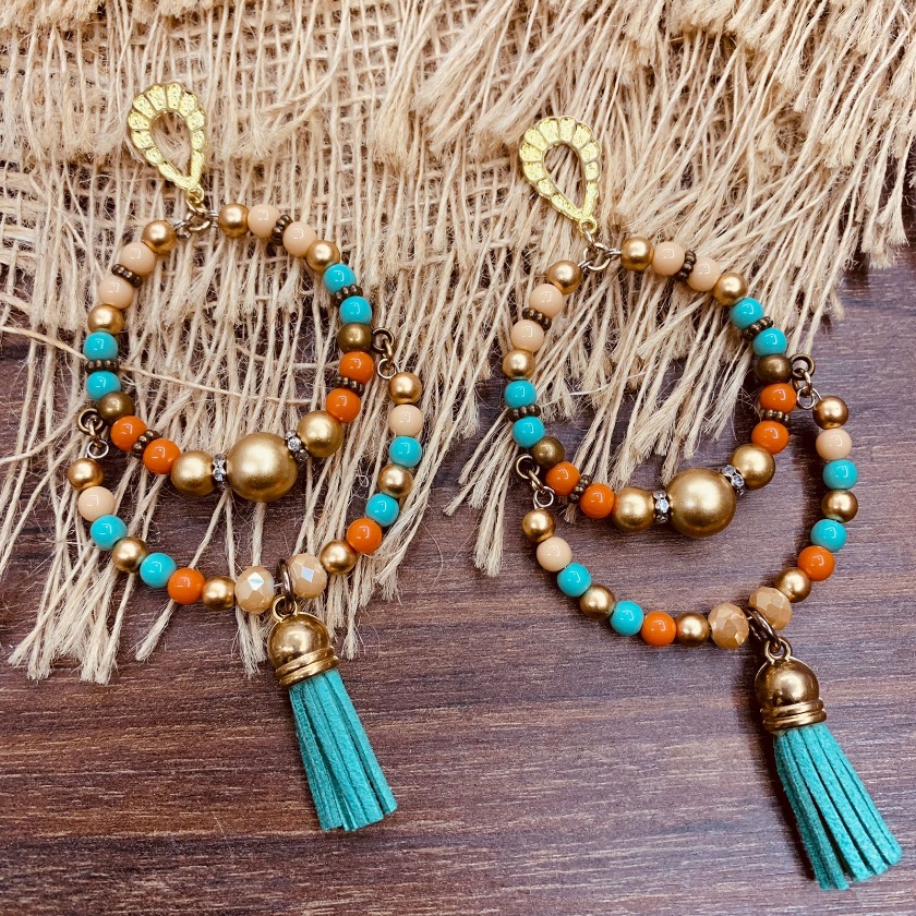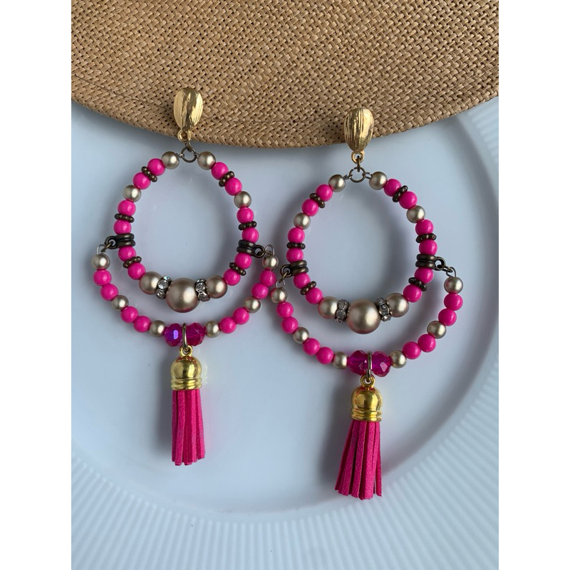 Argola Brinco Bijuterias pompom couro metal missangas Ju