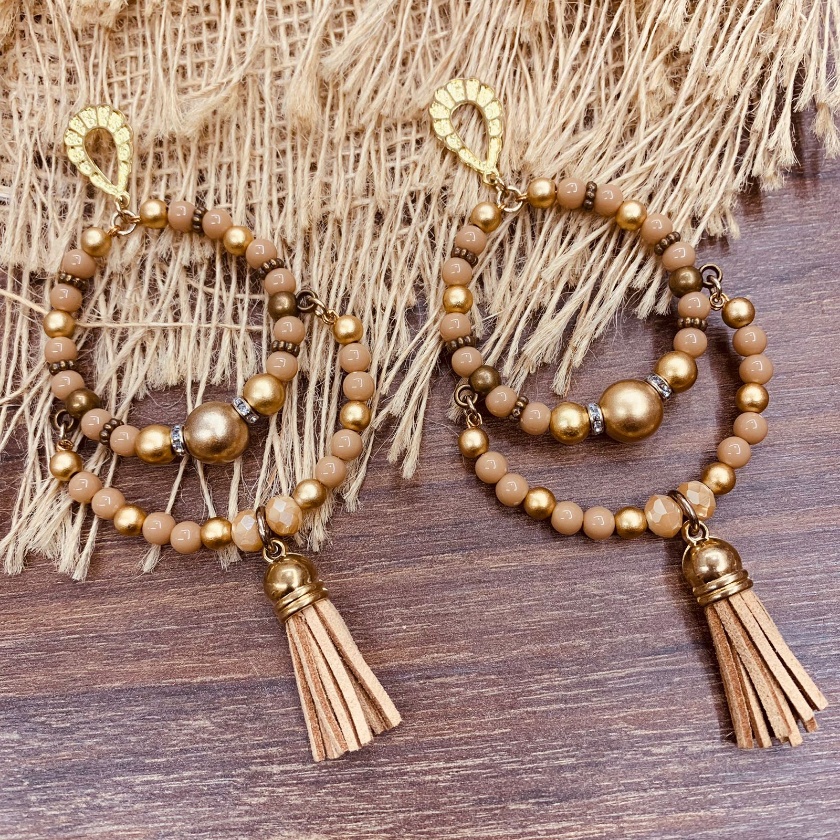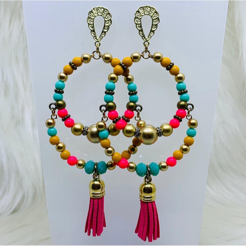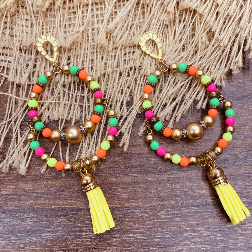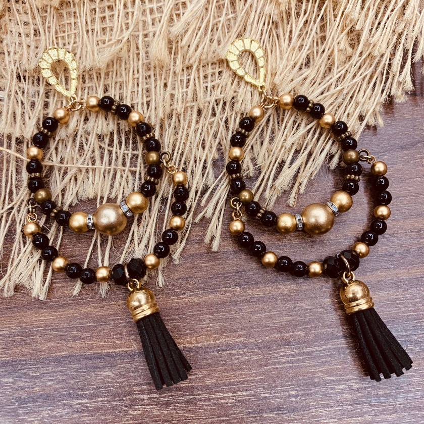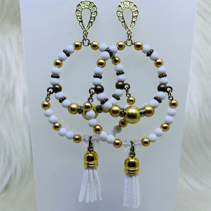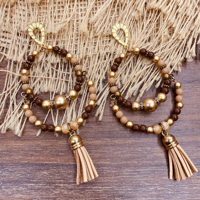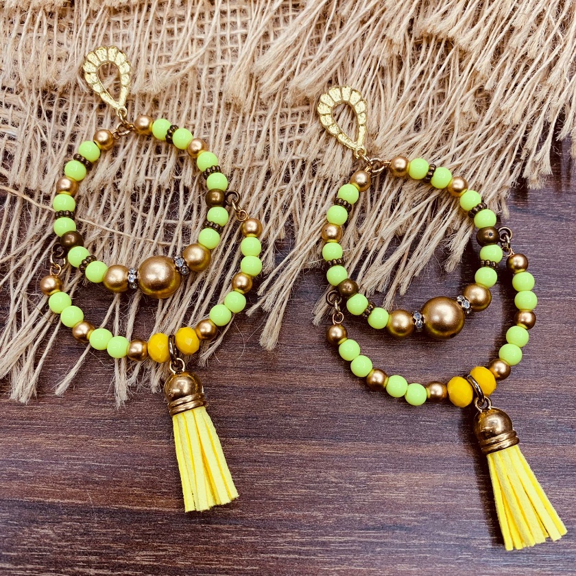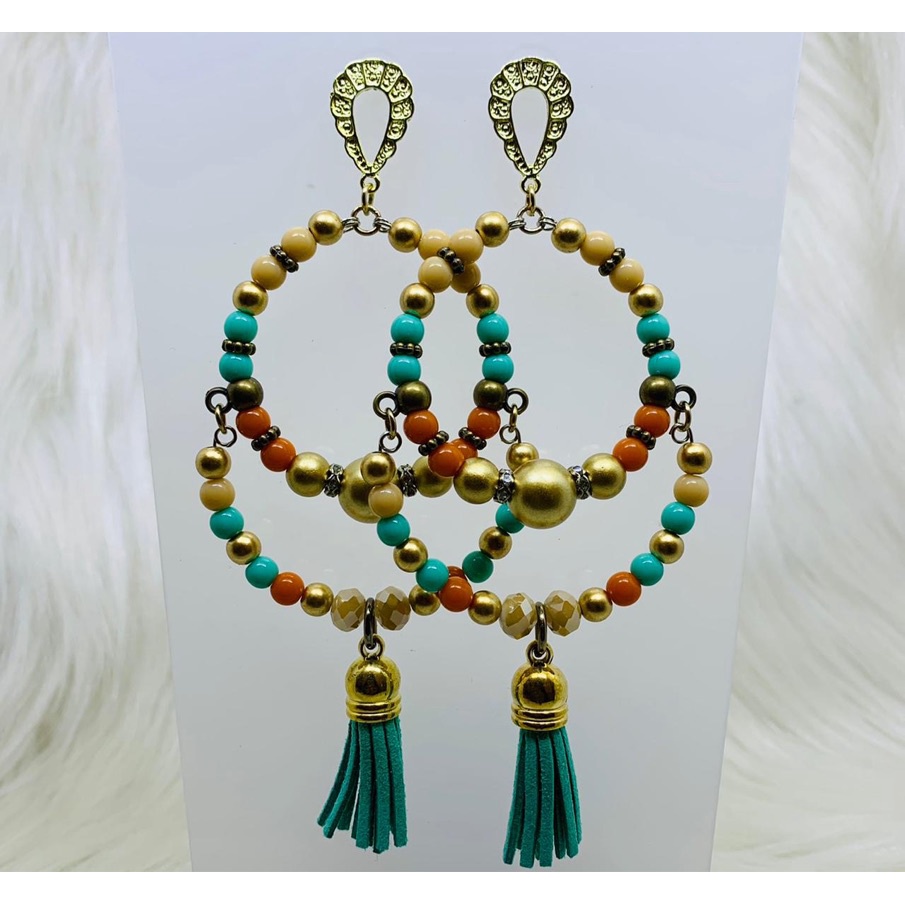 Argola Brinco Bijuterias pompom couro metal missangas Ju