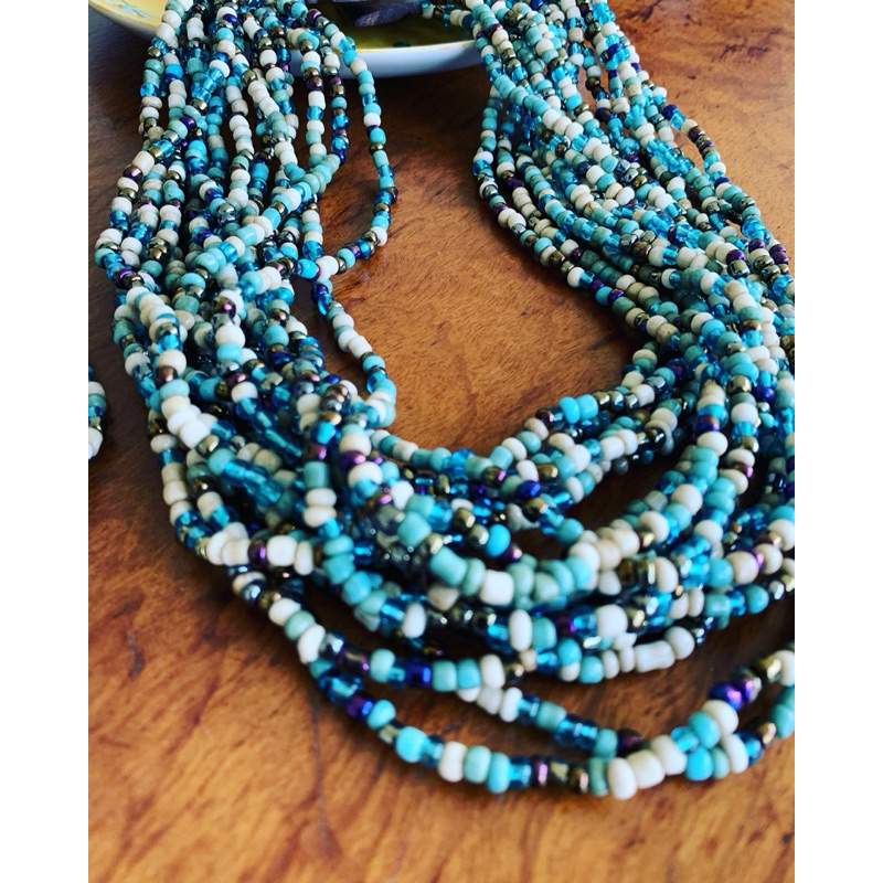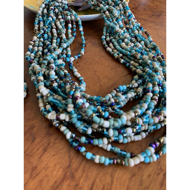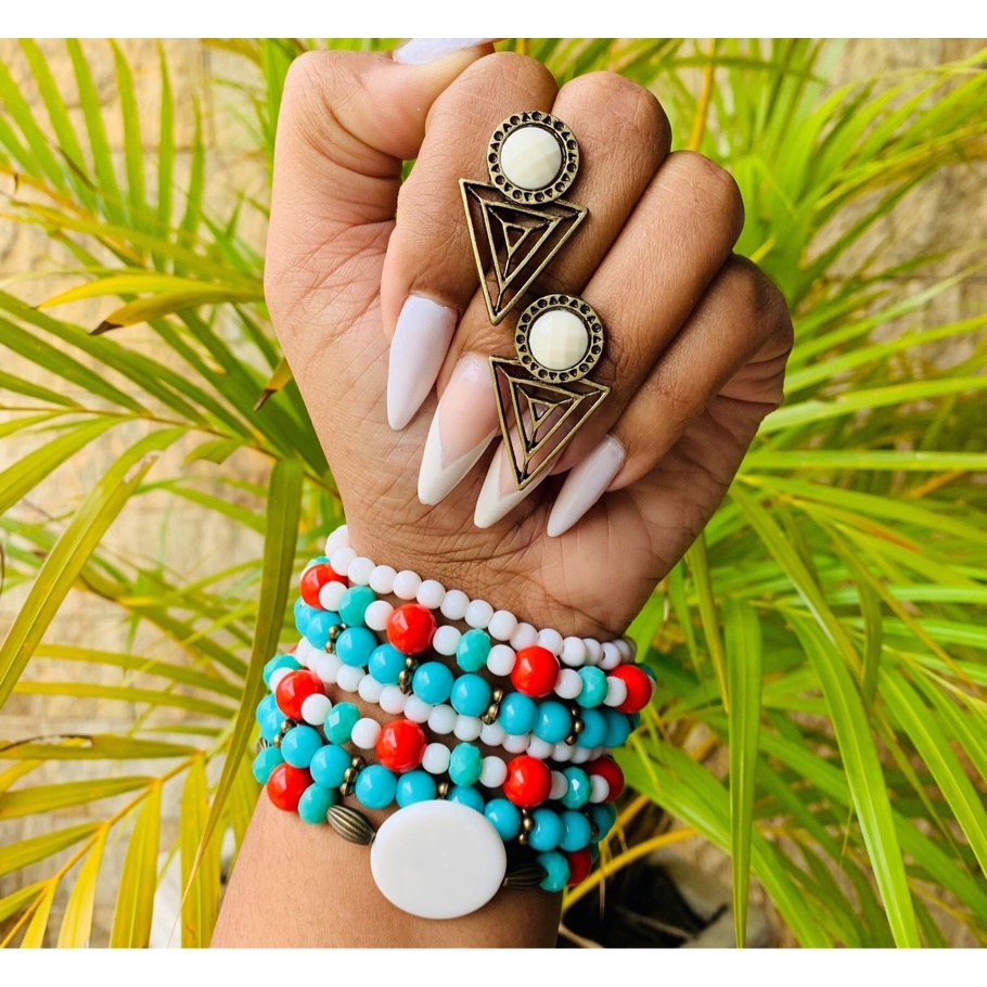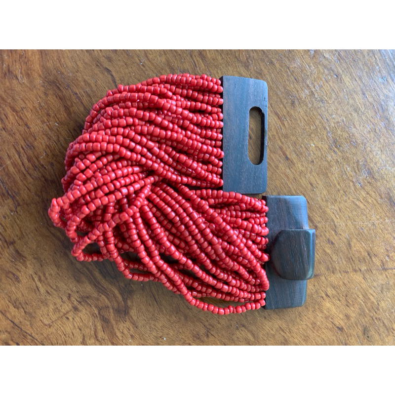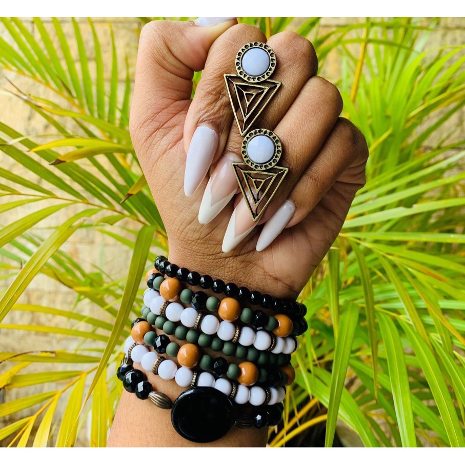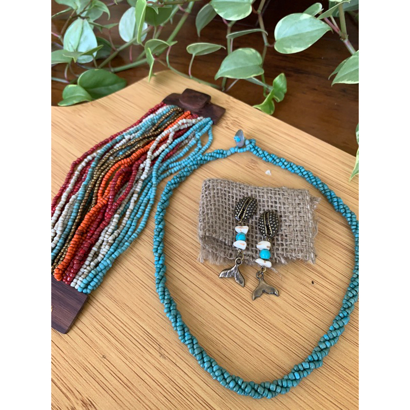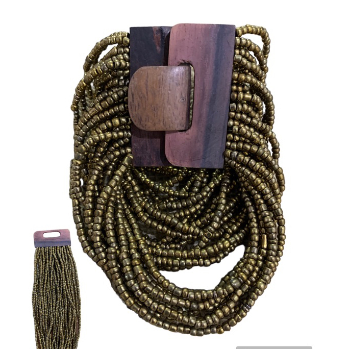 Kit pulseira femininas multicamadas em missangas e fecho madeira + par de brinco