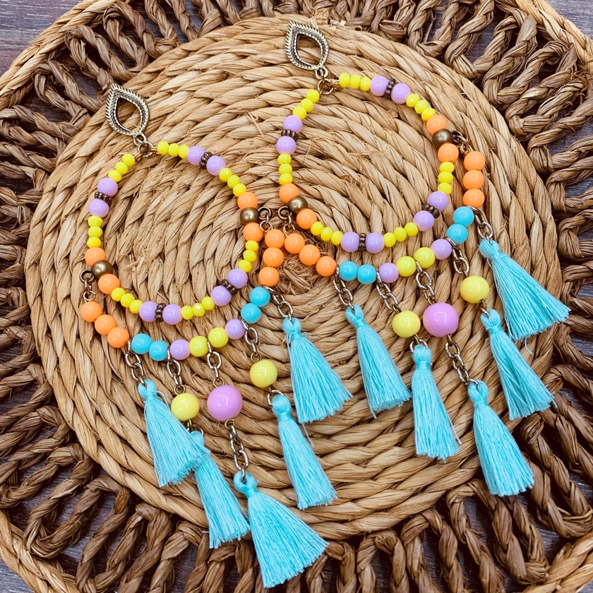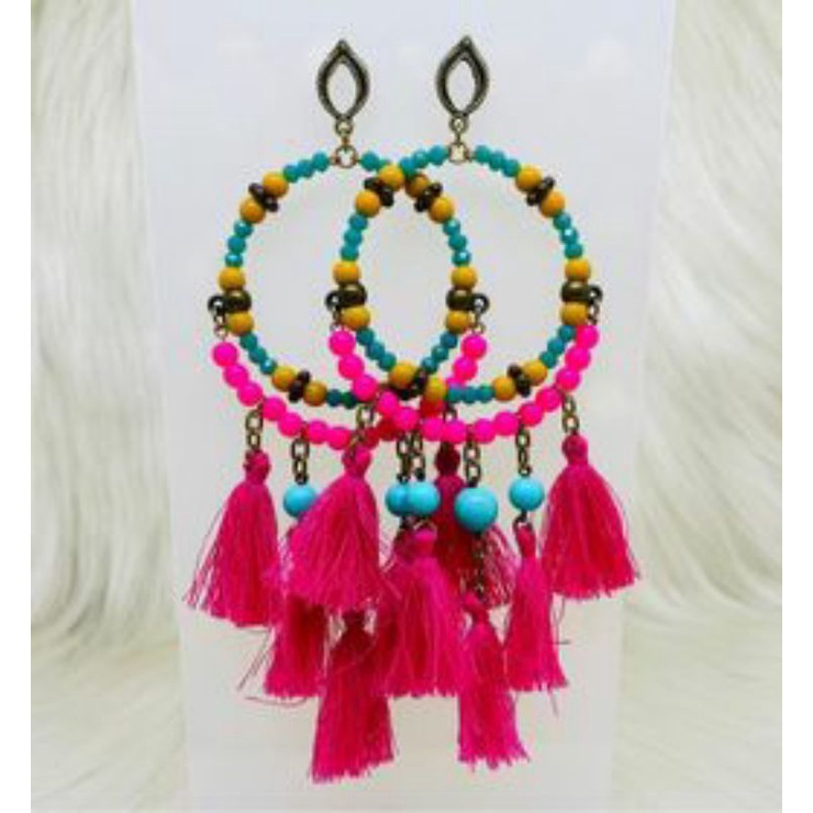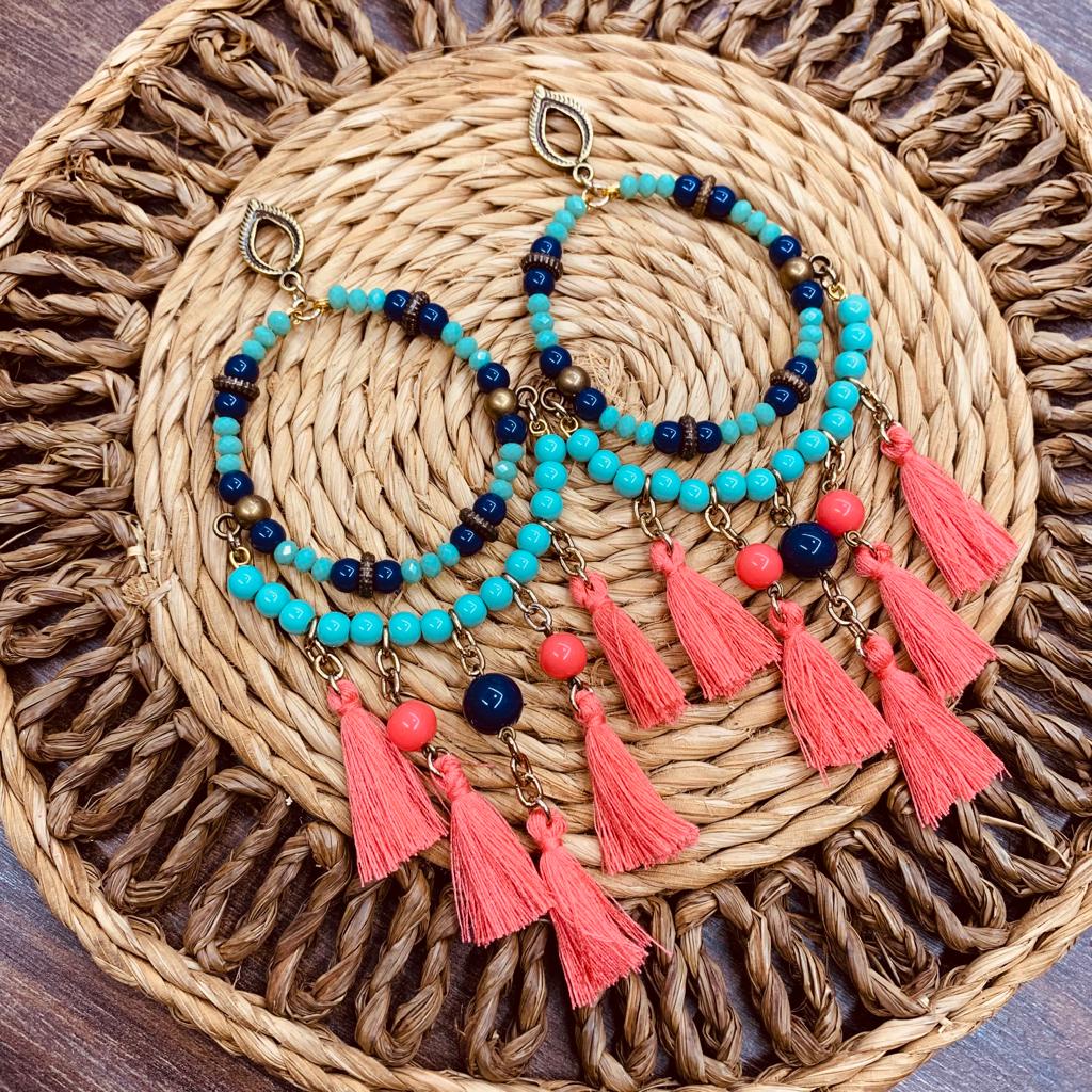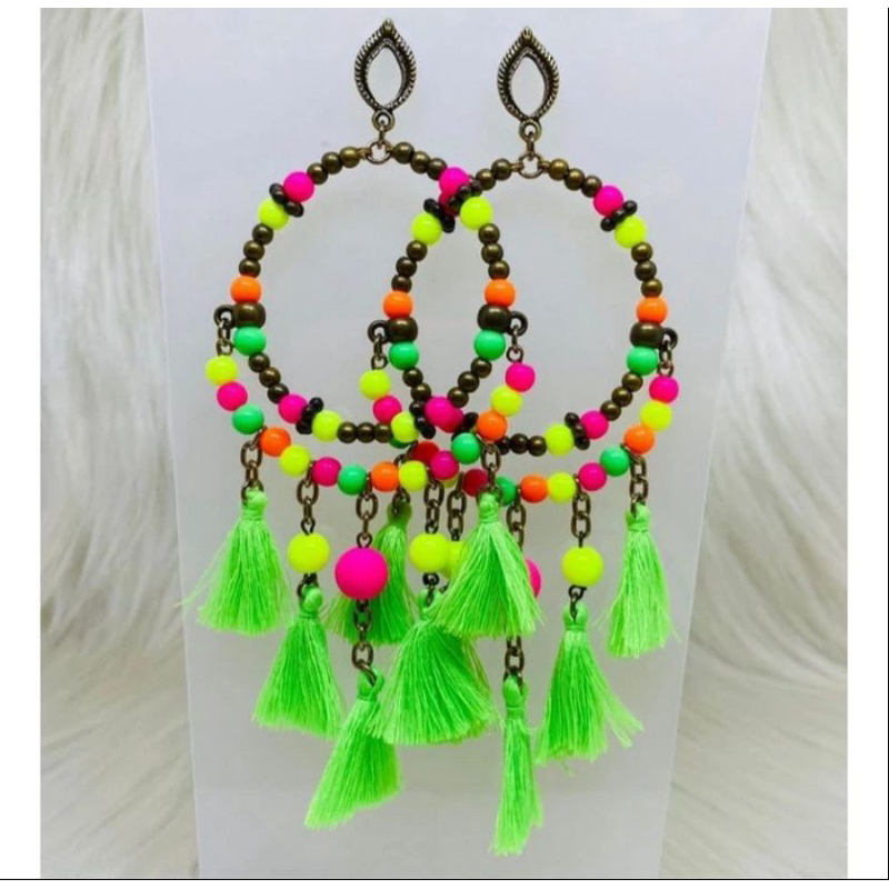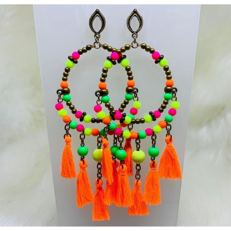Brinco argola filtro dos sonhos coloridos moda hippie neon