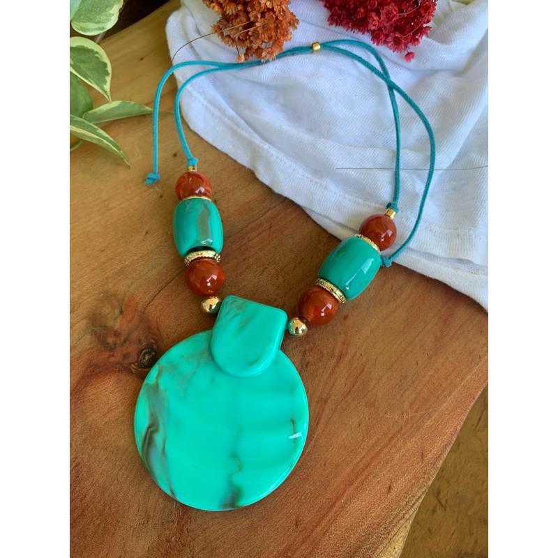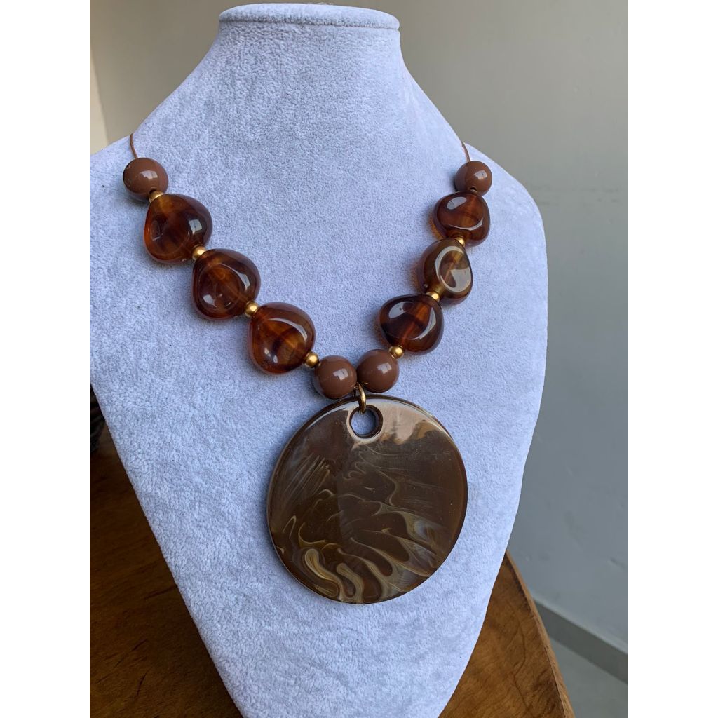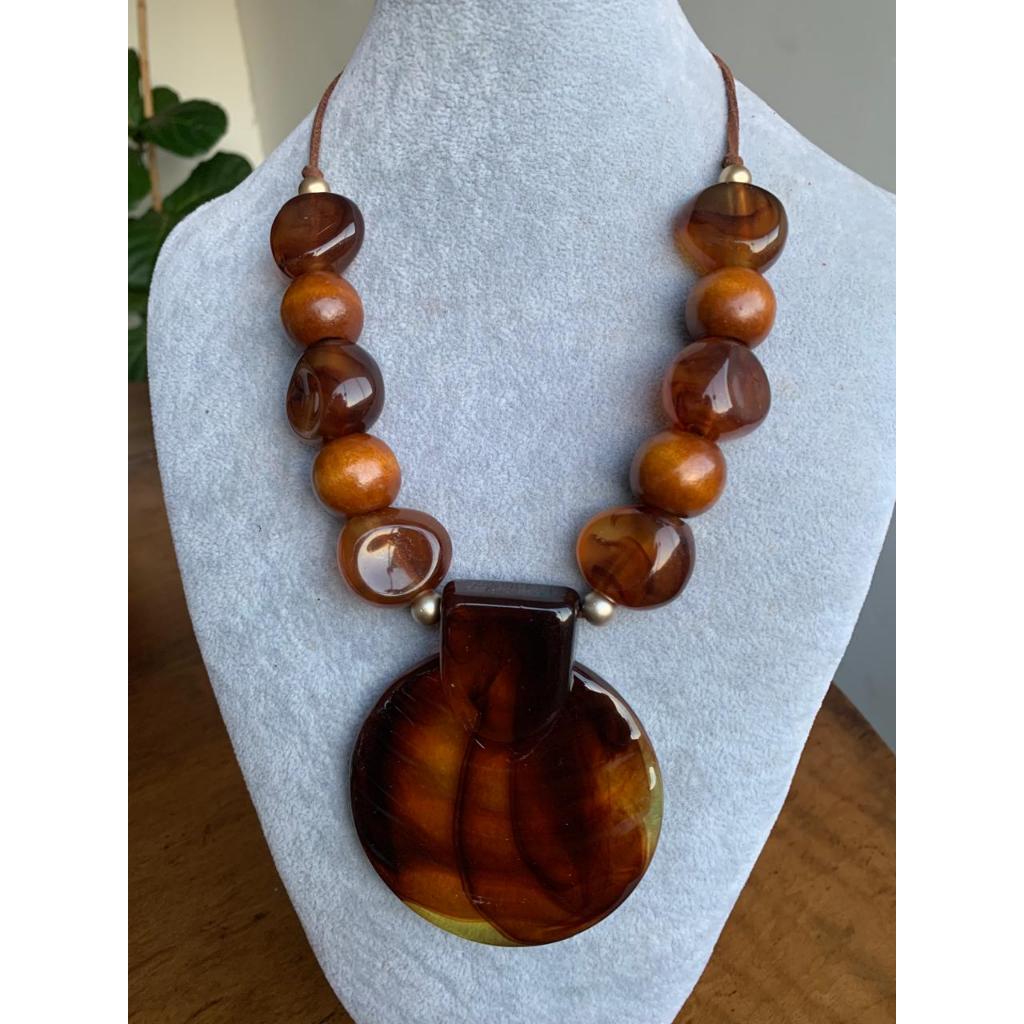 Colar luxo em resina pedra feminino mulher maxi colar