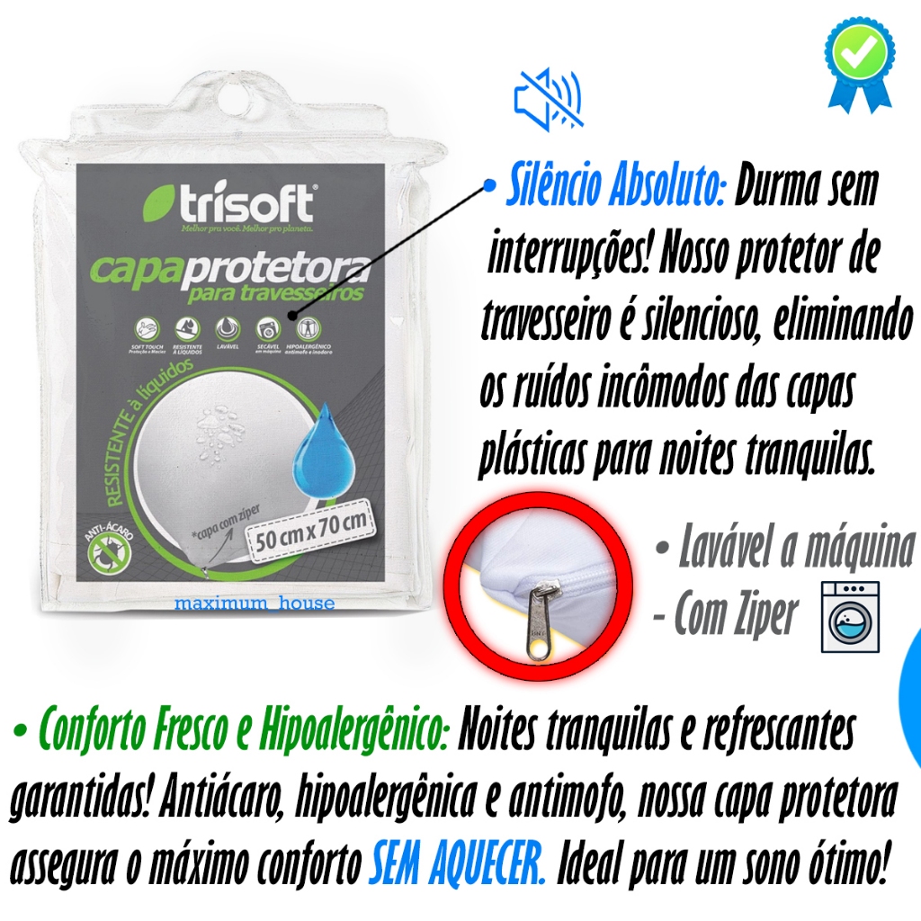 Kit 2 Capa Impermeável de Travesseiro Com Ziper 100% Fronha Protetora Anti Acaro Grande Branco