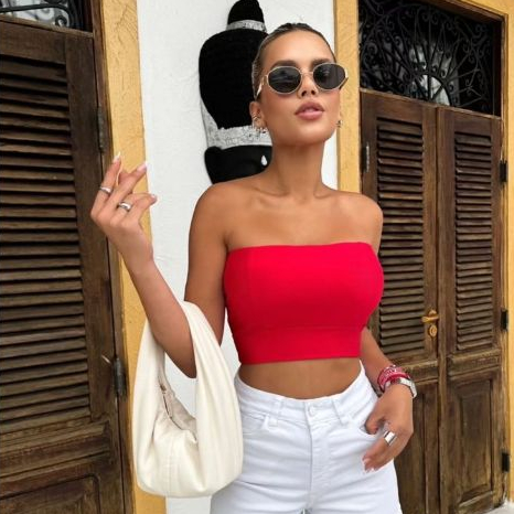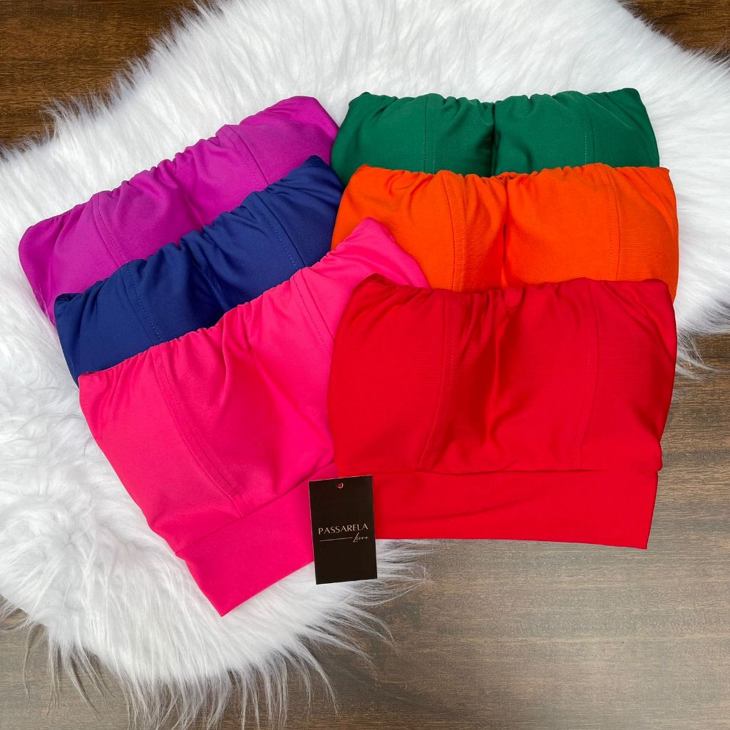 Cropped Feminino Top Faixa Tomara que Caia com Bojo Tecido Duplo Suplex Premium Envio em 24 Horas