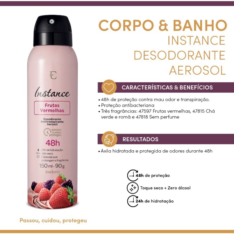 Eudora Desodorante Antitranspirante Aerosol Instance 150ml Unissex