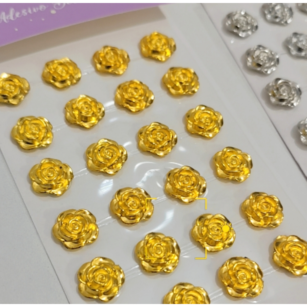 Aplique De Rosas Strass Adesivo 1,6cm - 24 Unidades