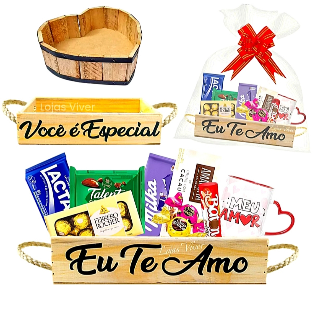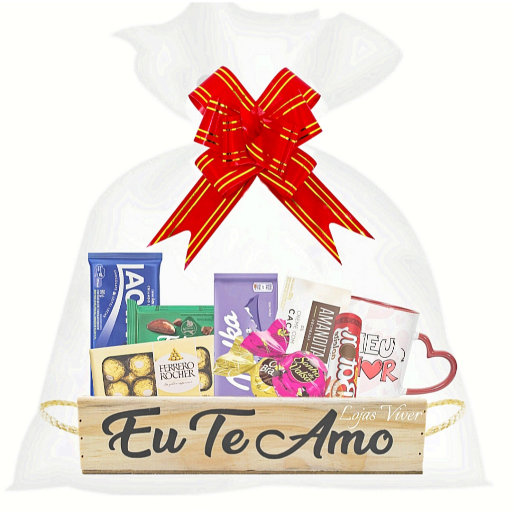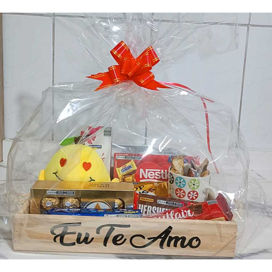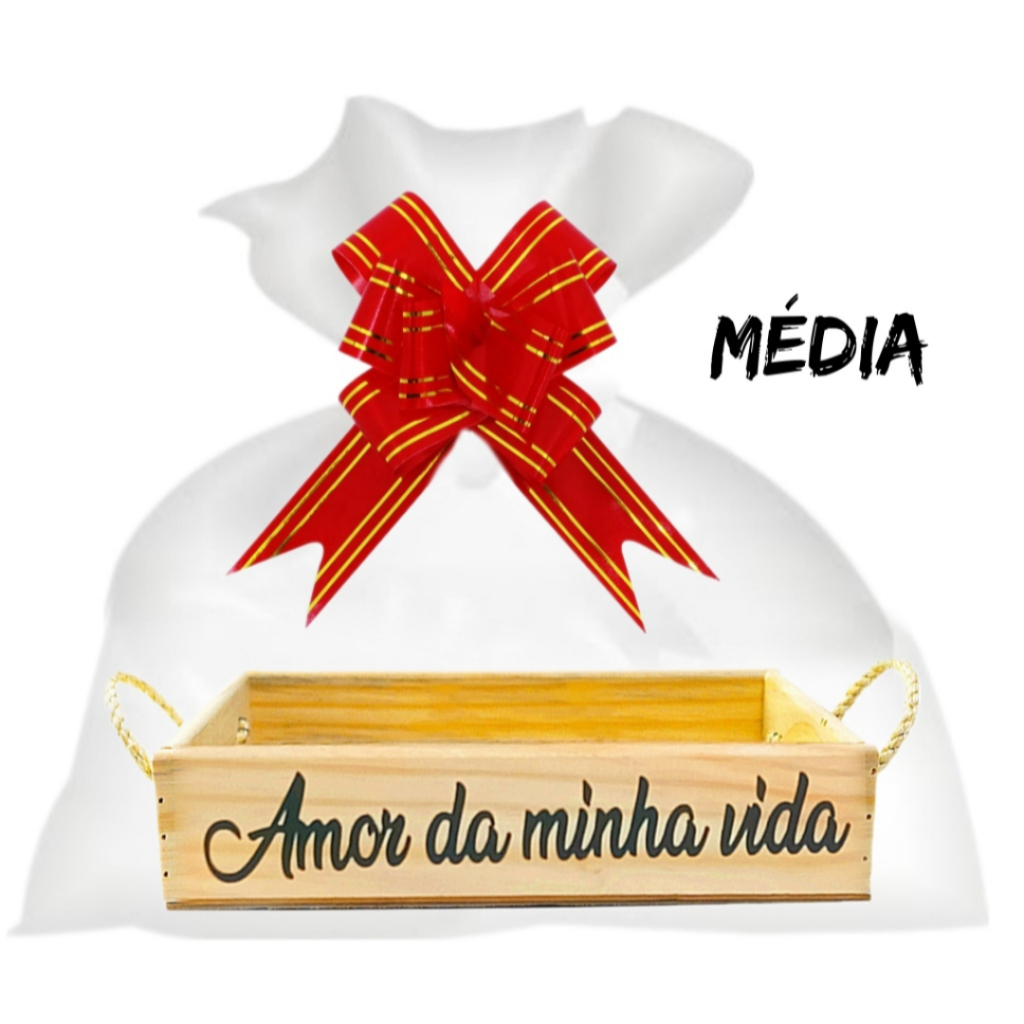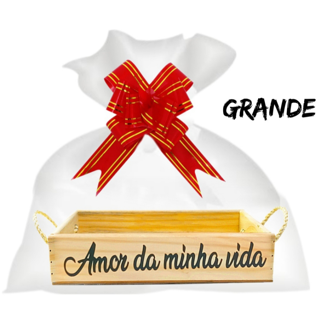 Kit Cesta Retangular + Laço + Saco + Palha