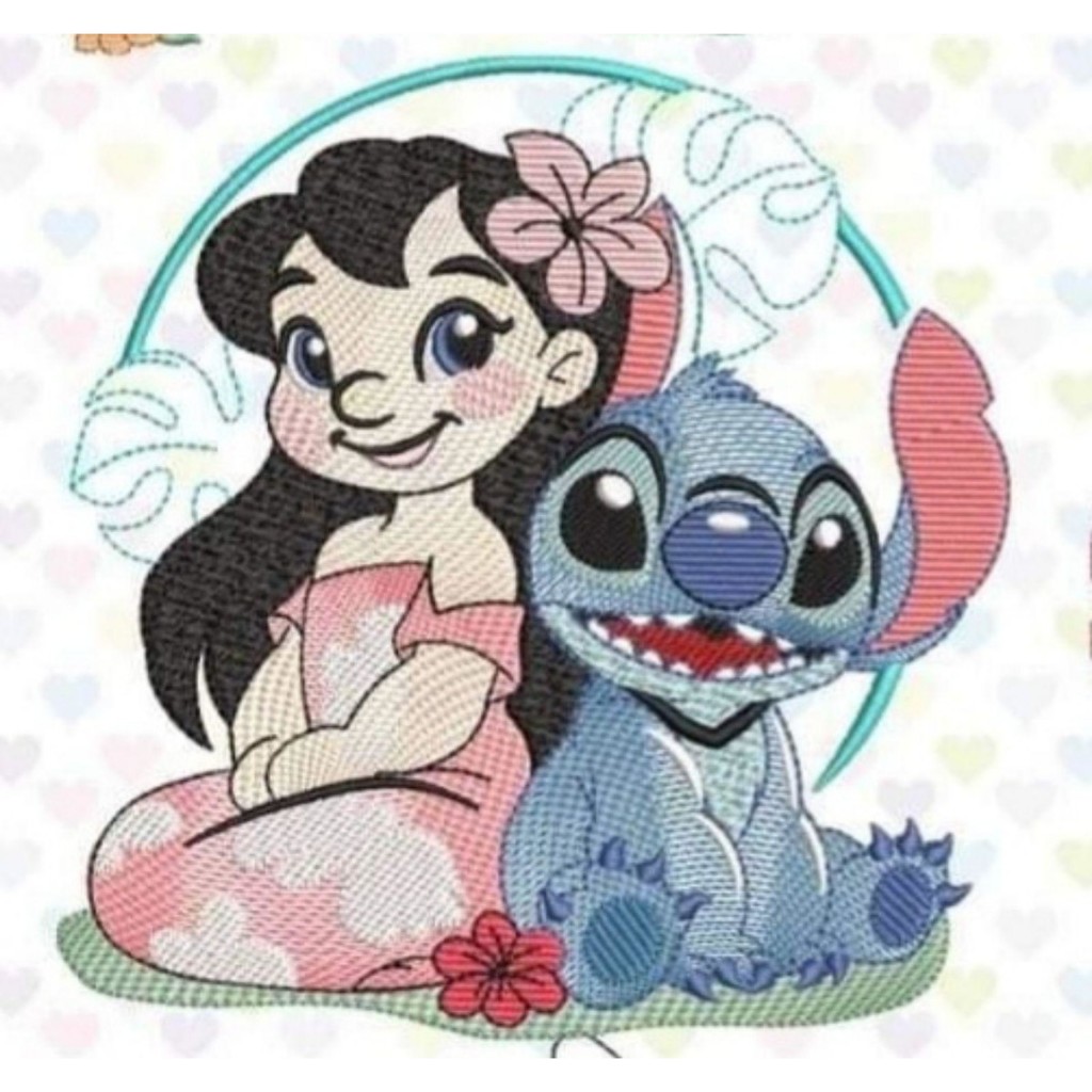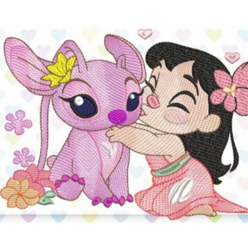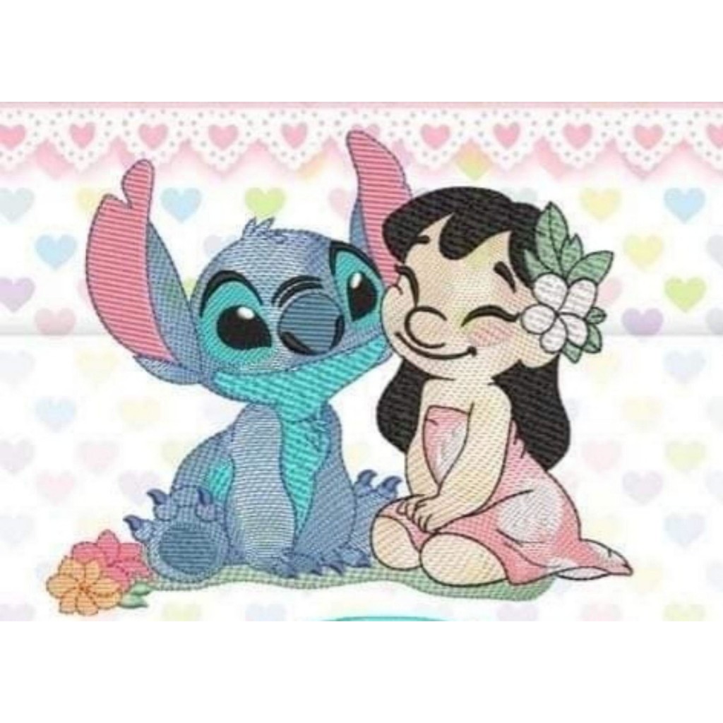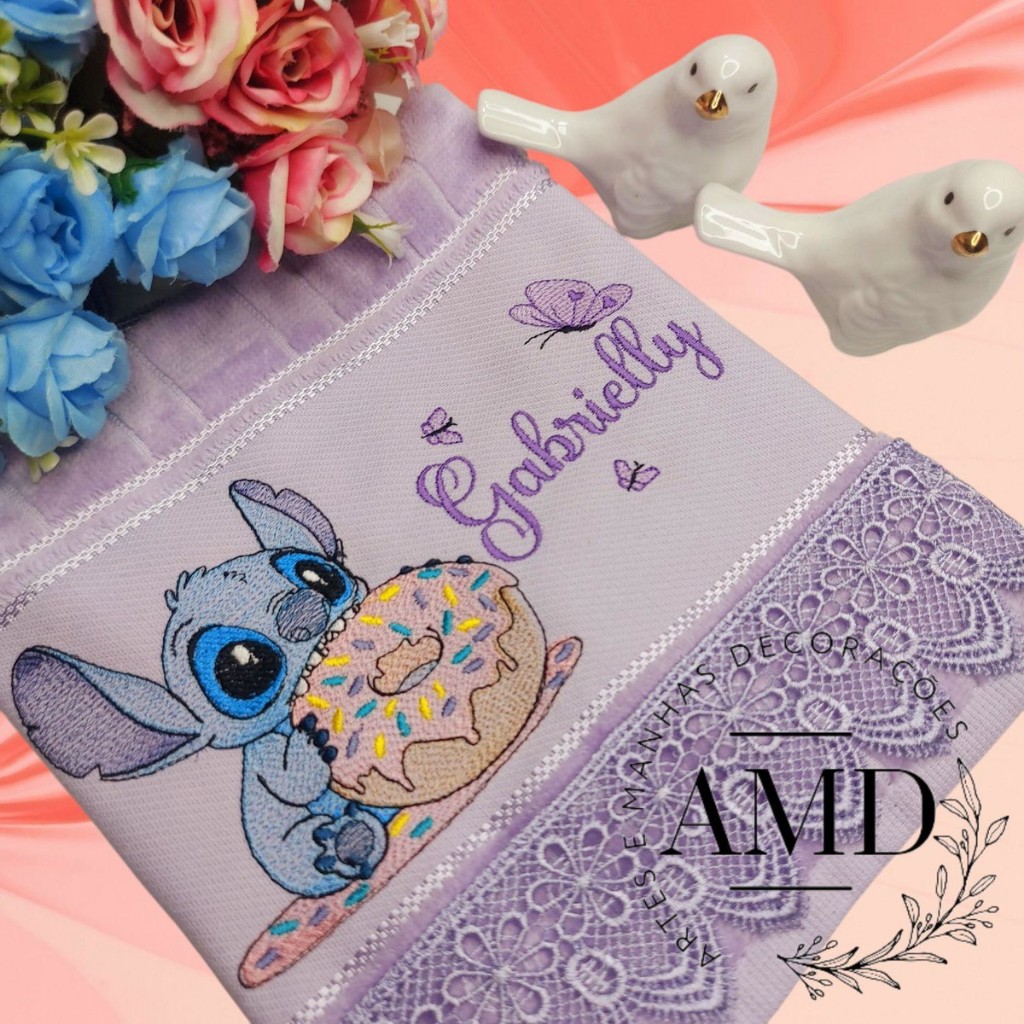 Toalhinha de mão personalizada Coleção STITCH bordada com nome e barrado em guipir