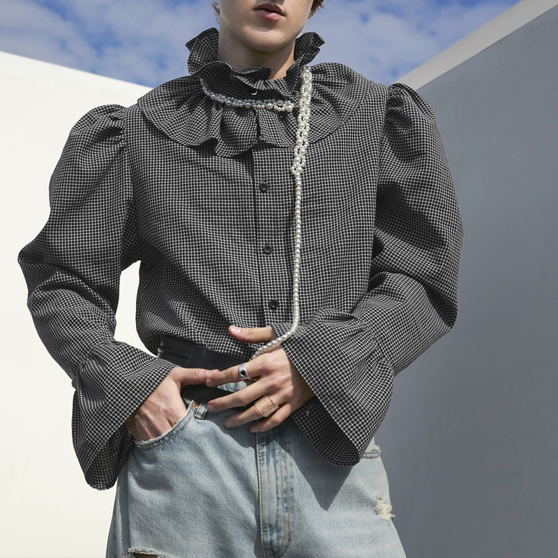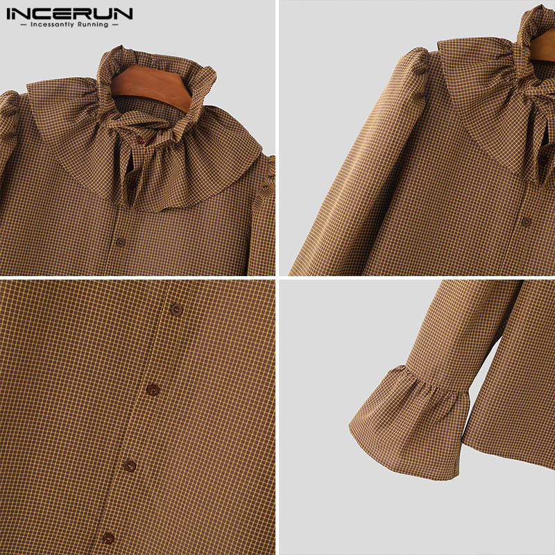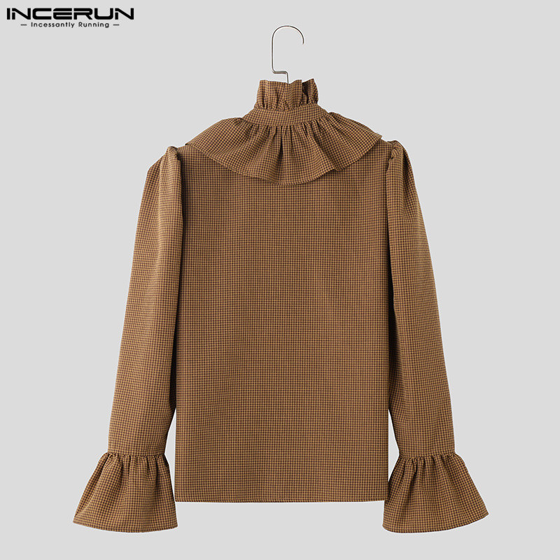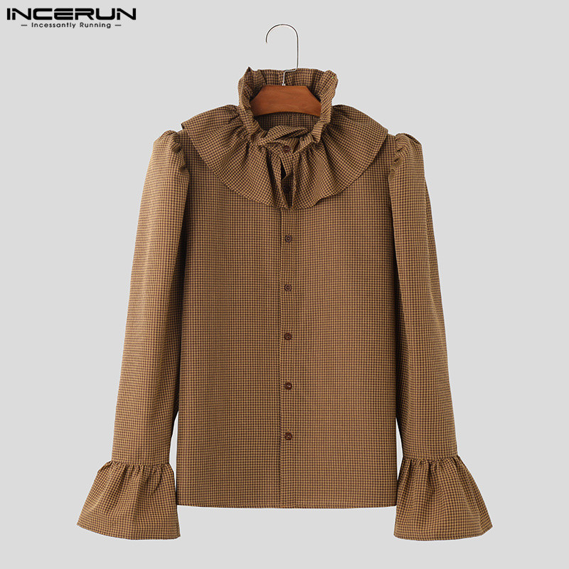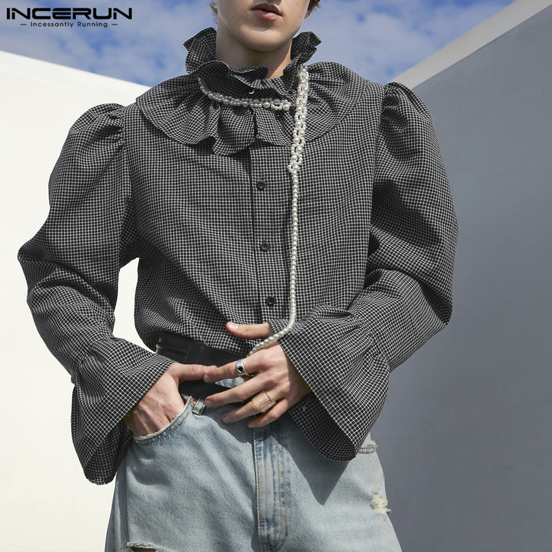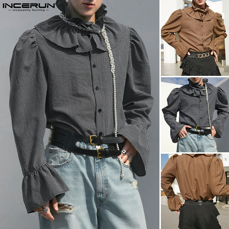 Homens Vintage Fashion Ruffle Hem Design Casual Camisas De Manga Comprida