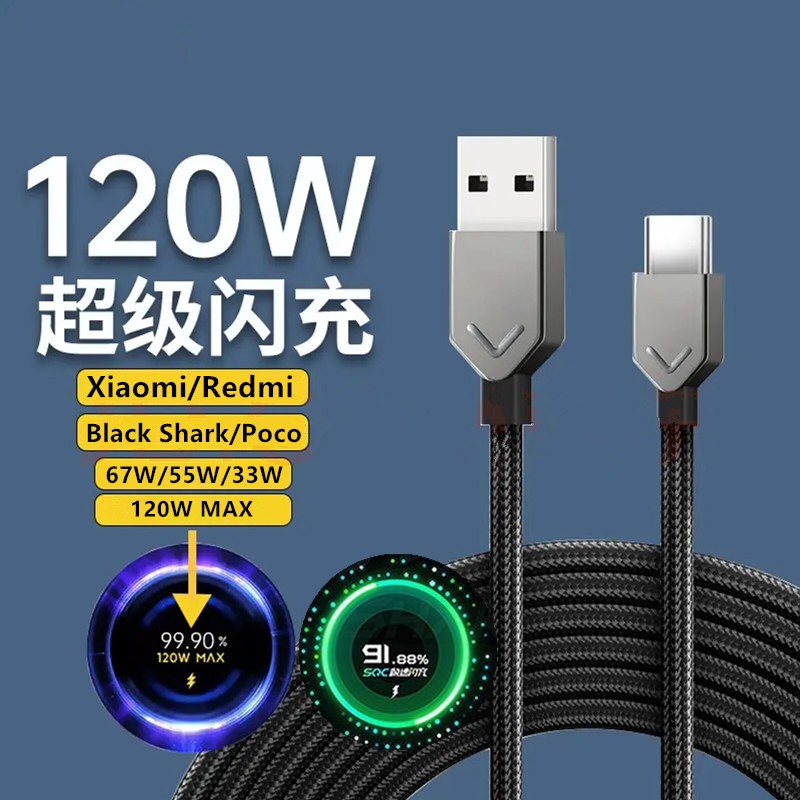Adequado para Xiaomi 120W cabo de carregamento TipoC Xiaomi 6A Cabo de carregamento rápido Redmi Note11 pro Cabo de dados POCO F4 GT Cabo de transmissão Black Shark 5pro Cabo de cotovelo de jogo 67W turbo charging