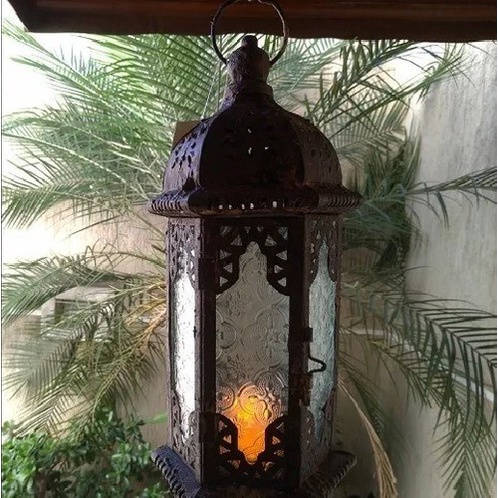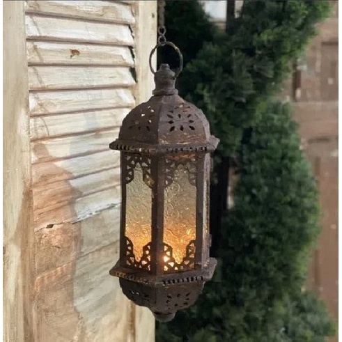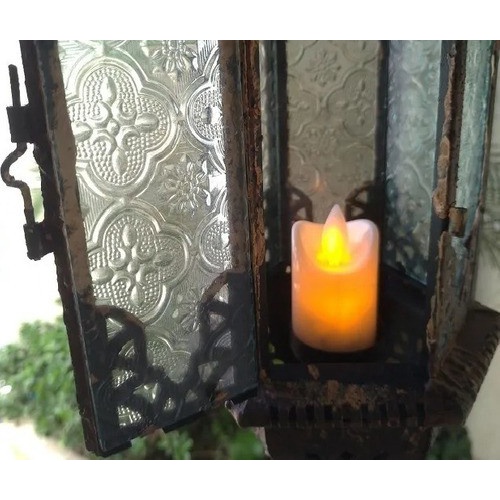 Lanterna Rustica Com Corrente + Vela De Led Chama Viva
