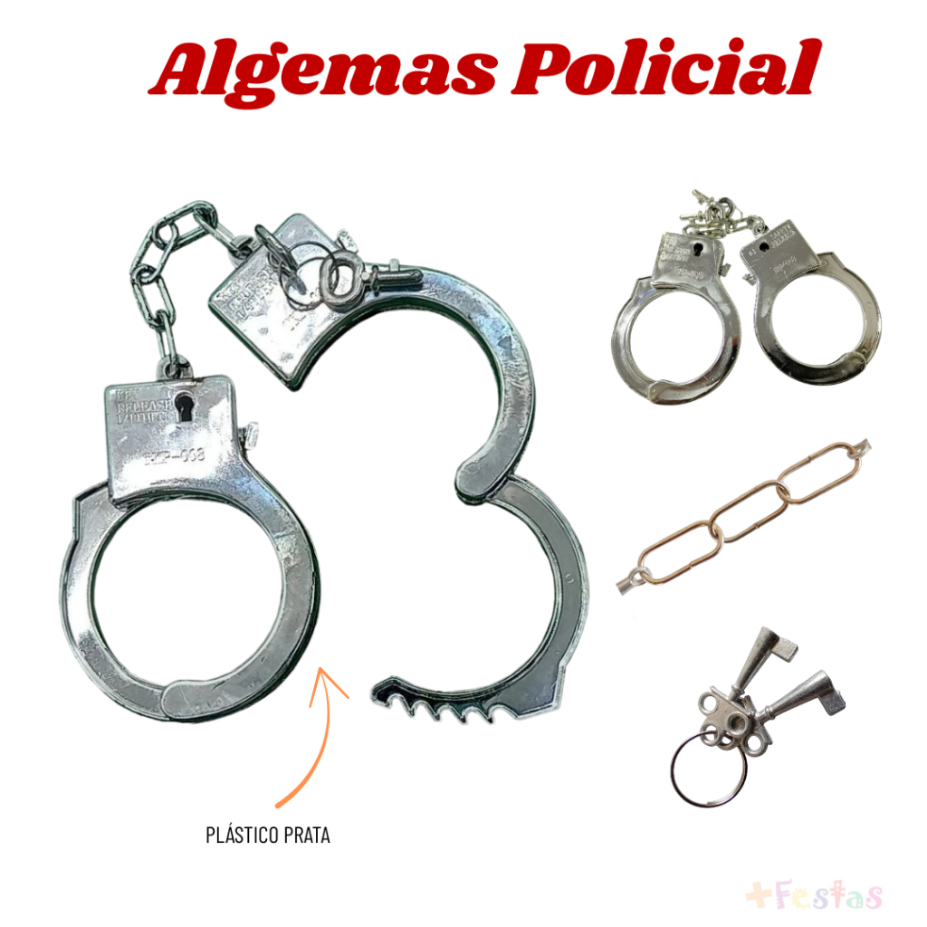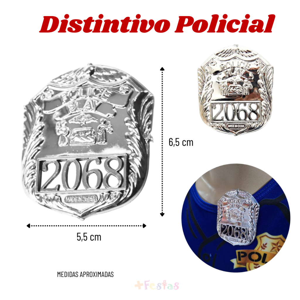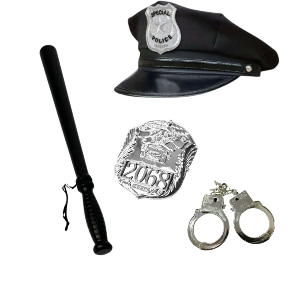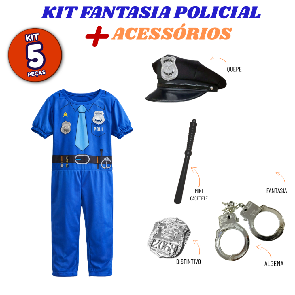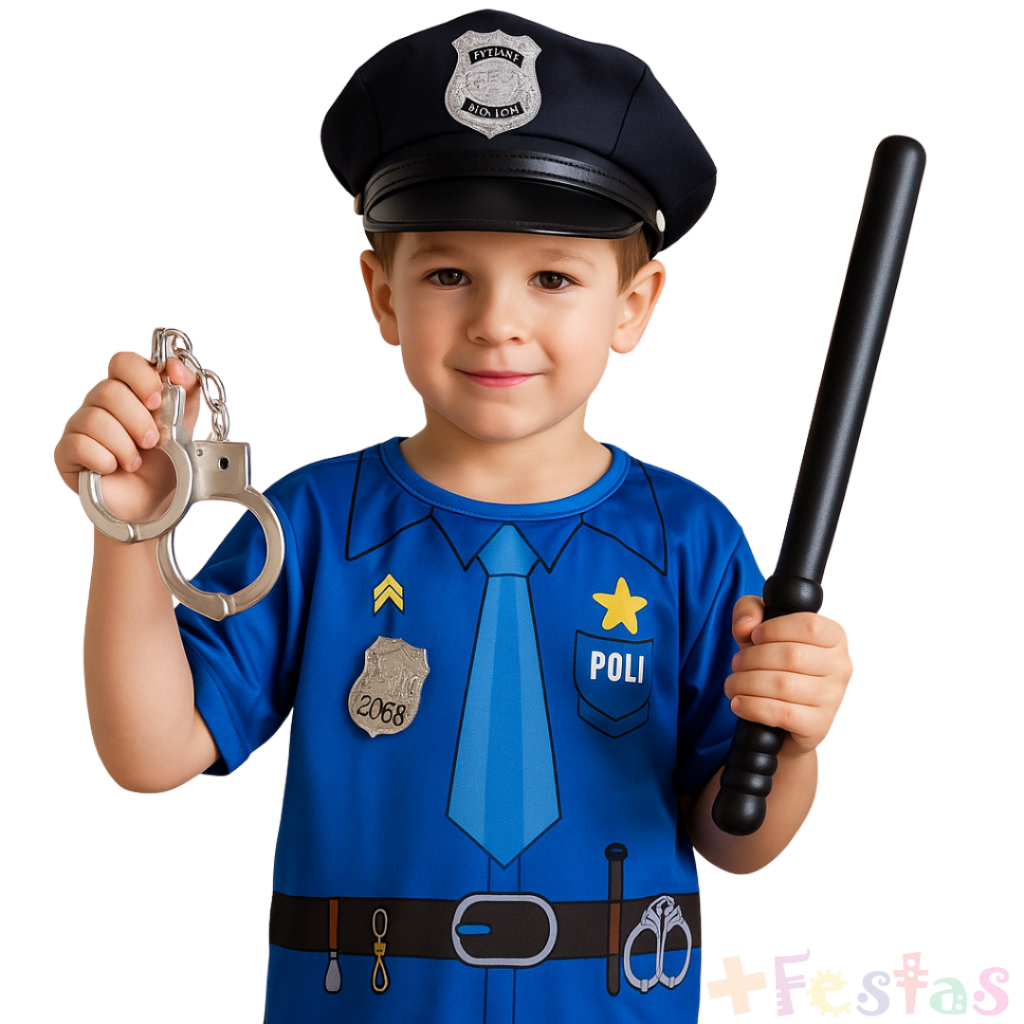 Fantasia Policial Infantil Carnaval Masculina Acessórios Algema Distintivo Quepe Cacetete