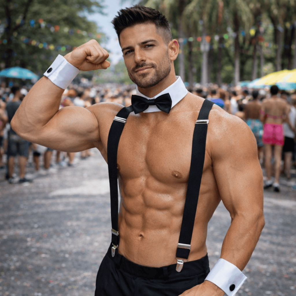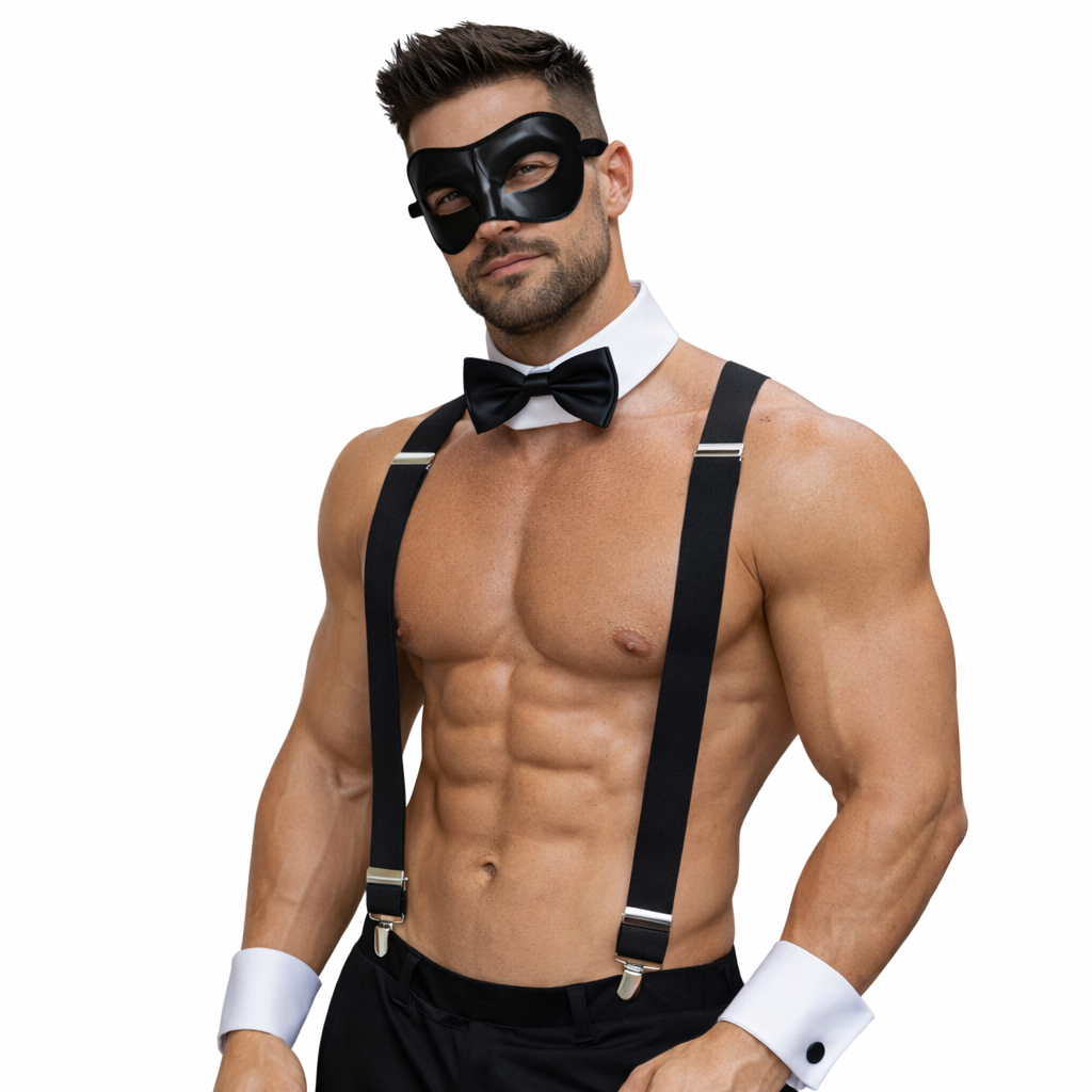 Acessórios Fantasia Masculina Sexy Barman Suspensório Gravata Noivo Garçom