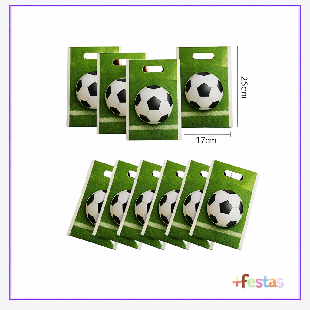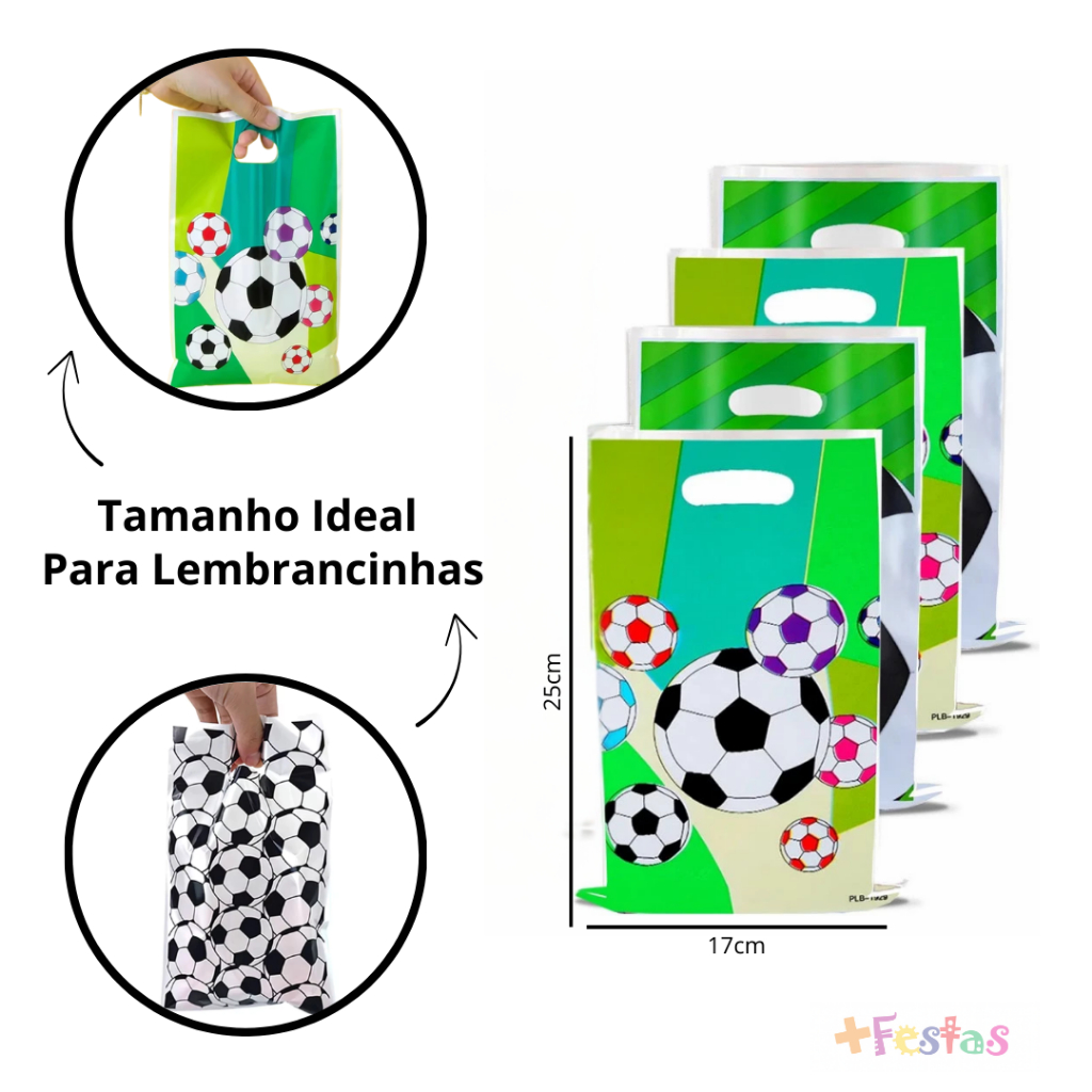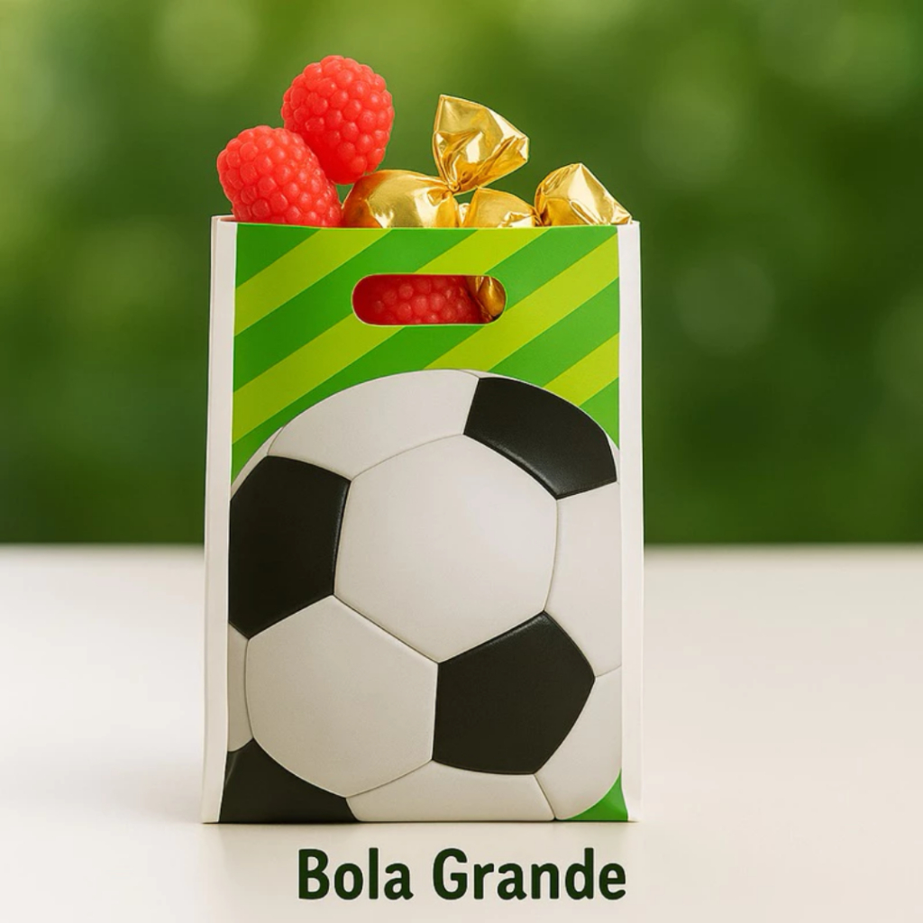 Kit até 50 Sacolas Surpresa Futebol 25x17cm Lembrancinha Festa Infantil Craque Alça Boca Palhaço