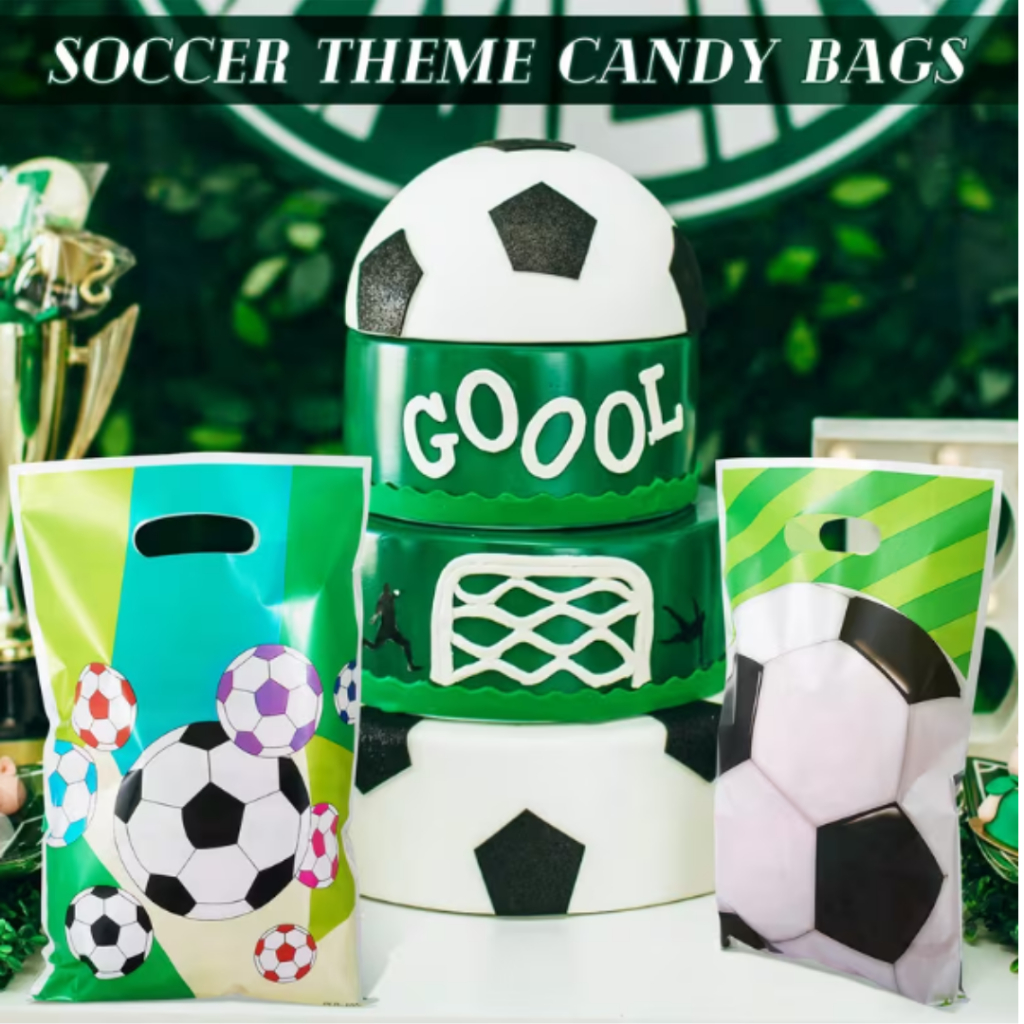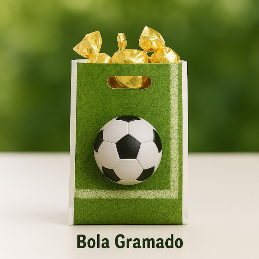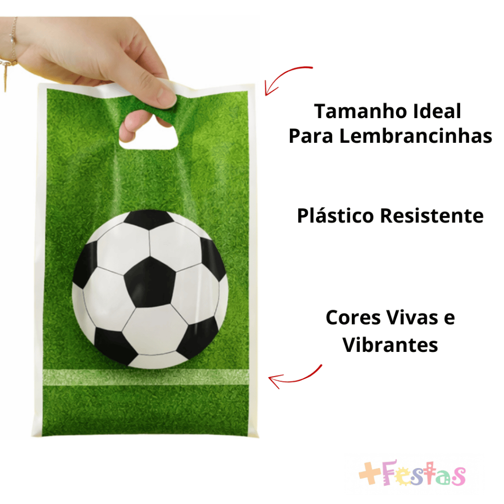 Kit até 50 Sacolas Surpresa Futebol 25x17cm Lembrancinha Festa Infantil Craque Alça Boca Palhaço