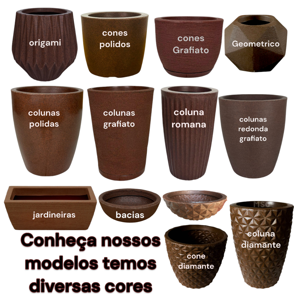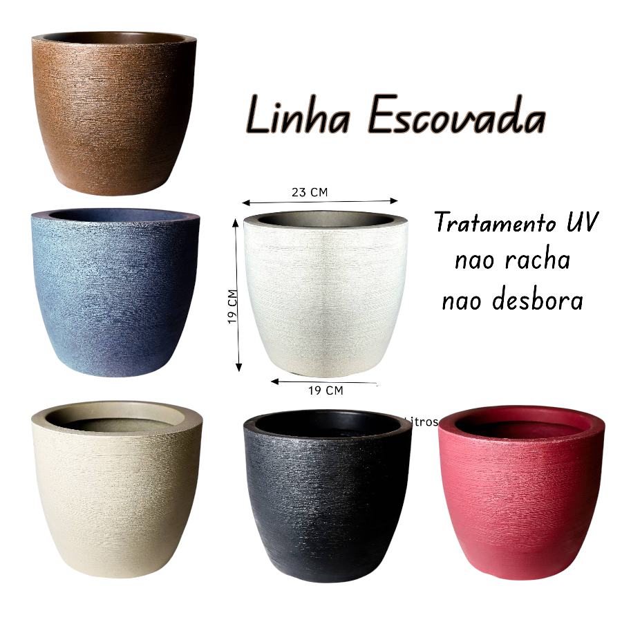 vaso decorativo para plantas 20x23 em polietileno escovado cone redondo