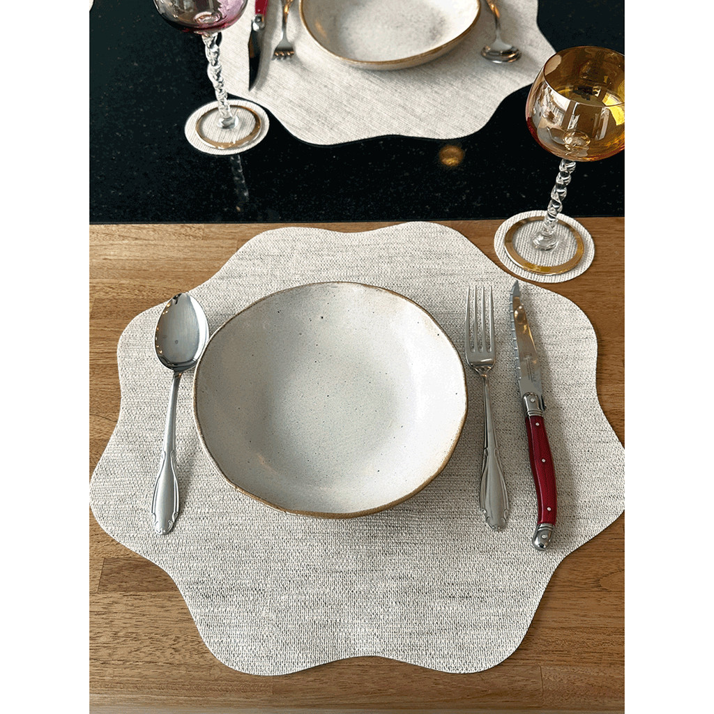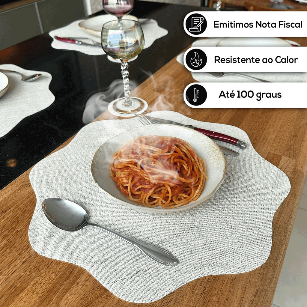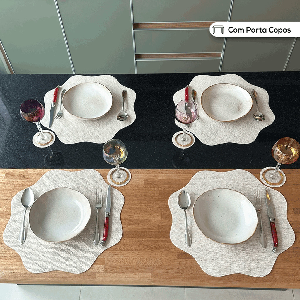 Kit 8 Jogo Americano Redondo Ondulado Sisal Marfim + 8 Porta Cozinha Premium