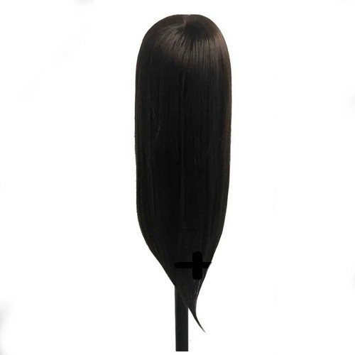 Cabeça Sintética Castanho Escuro + Suporte + Tesoura Kit Pentes
