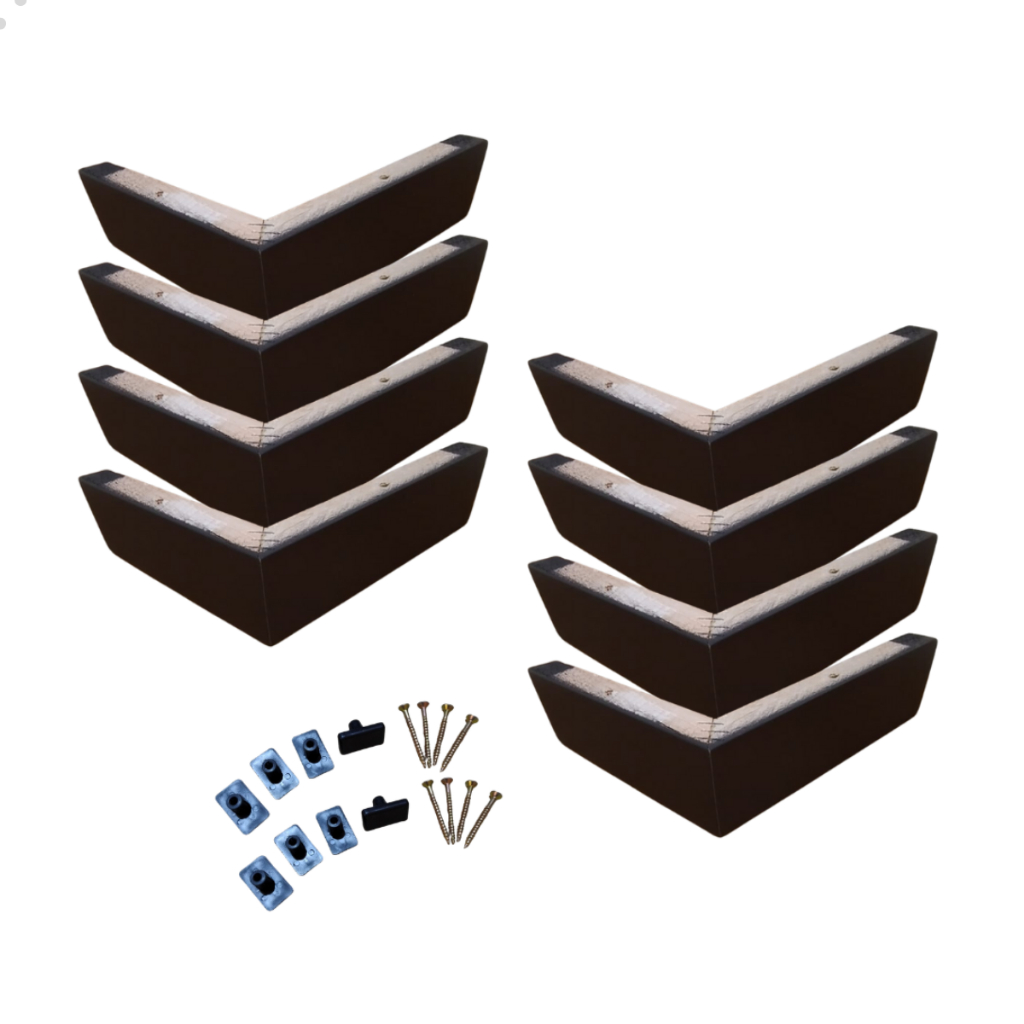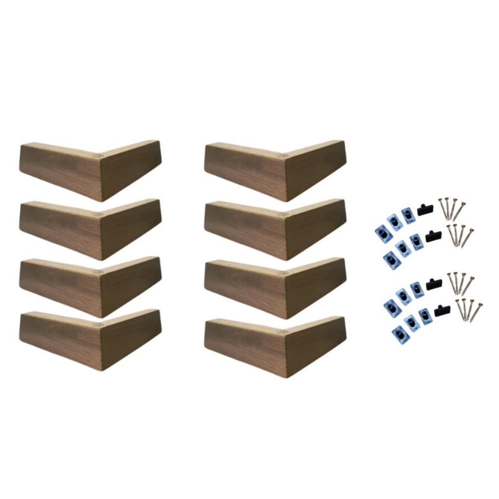 Kit 8 Cantoneiras Pé Madeira Eucalípto Pés De Sofá Moveis Poltrona 18x18x4,5 cm