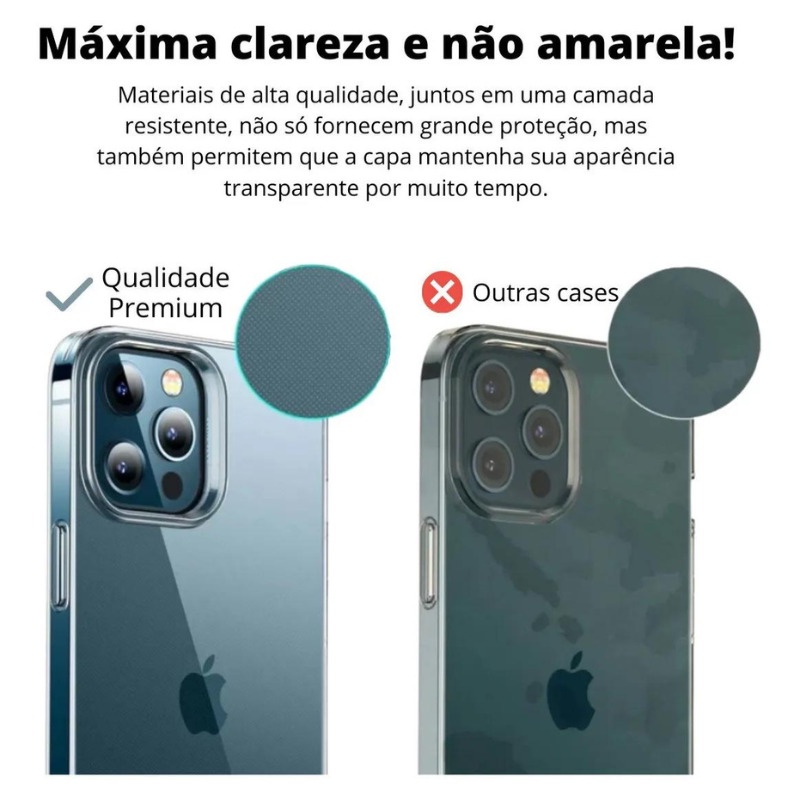 (Não Amarela) Capa Capinha Transparente Anti Impacto Case Space Original Para Todos Modelos IPhone 14 13 12 11 Xr 7 8Plus Pro Max