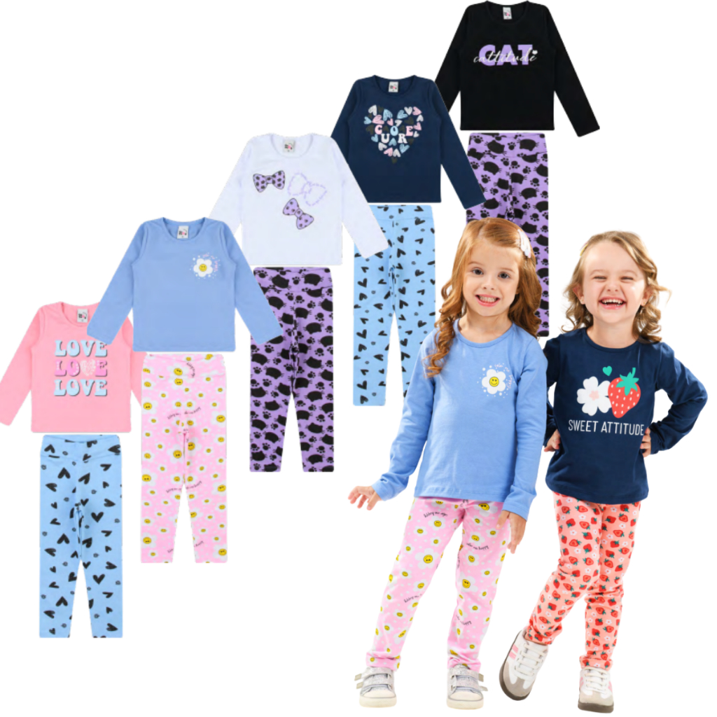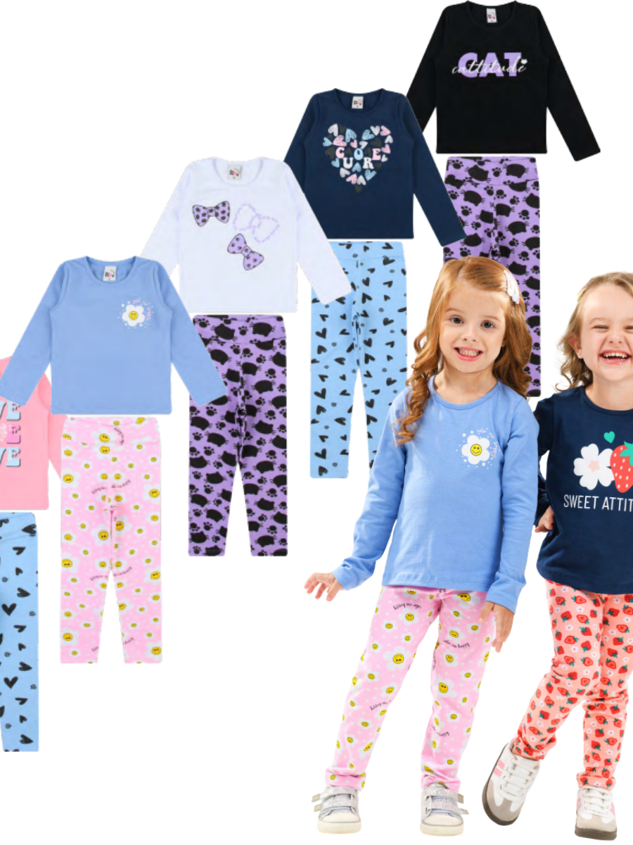 kit 6 Peças Inverno 3 Calças Legging + 3 Blusas de Meia Estação Menina Conjunto Infantis Promoção Modelo 1 ao 10 ano
