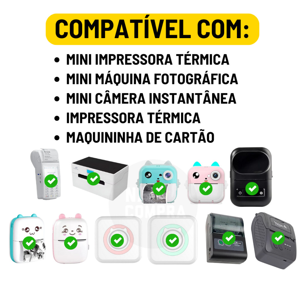 Kit 5 Bobina Etiqueta Térmica Adesiva 57mm Rolo Amarelo Para Mini Impressora Portátil | Envio Imediato
