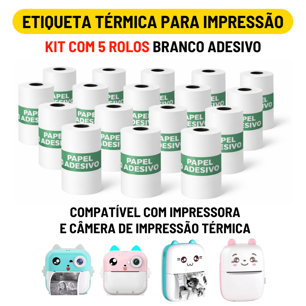 Rolo Etiqueta Térmica Adesiva Branco 57mm Refil Bobina Para Mini Impressora Portátil e Maquina Fotográfica
