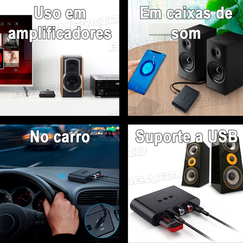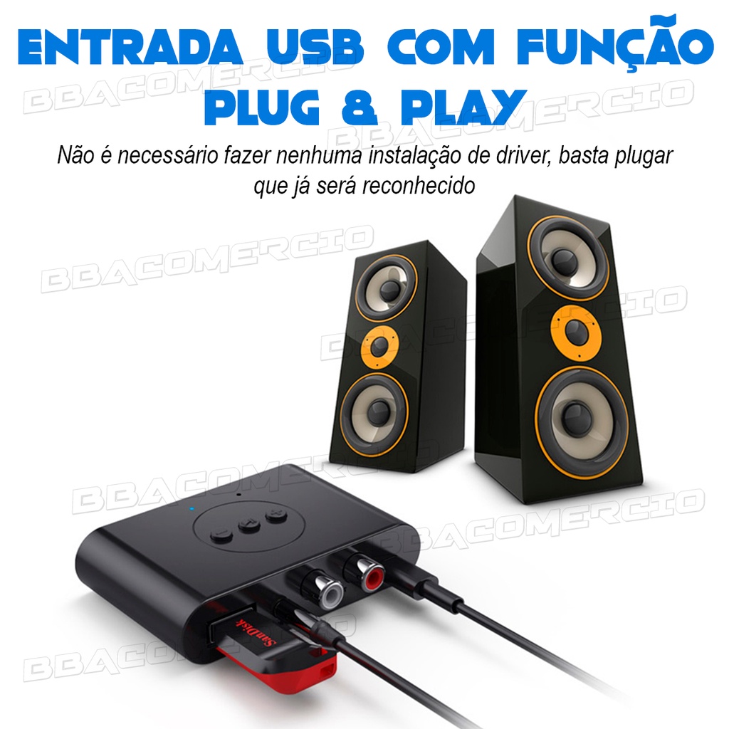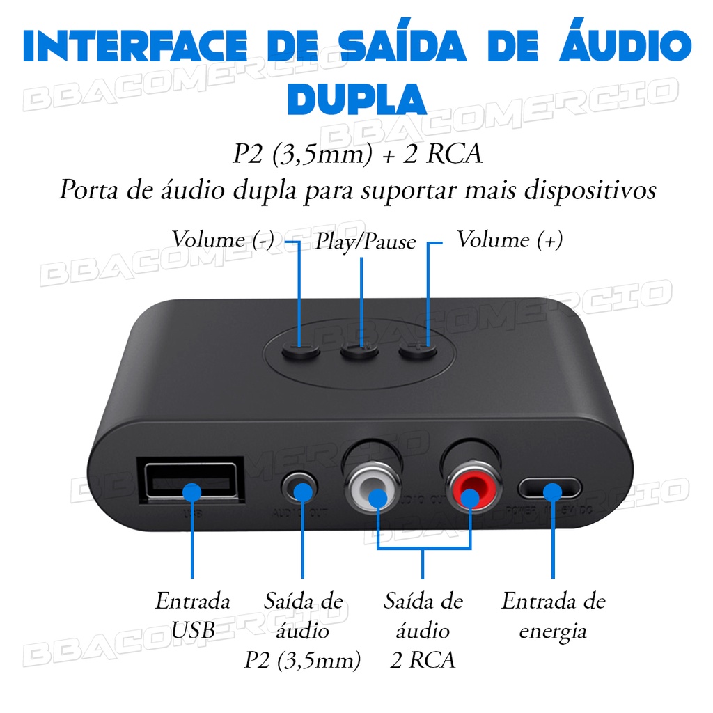 Receptor De Áudio Usb Tipo-C Bluetooth 5.3 Nfc Com P2 E Rca Para Carro Caixa de Som Receiver