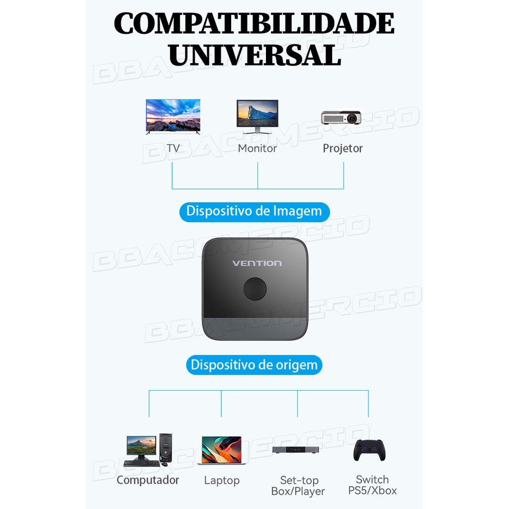 Adaptador Switch Splitter Divisor Hdmi 2em1 4k/60hz Vention