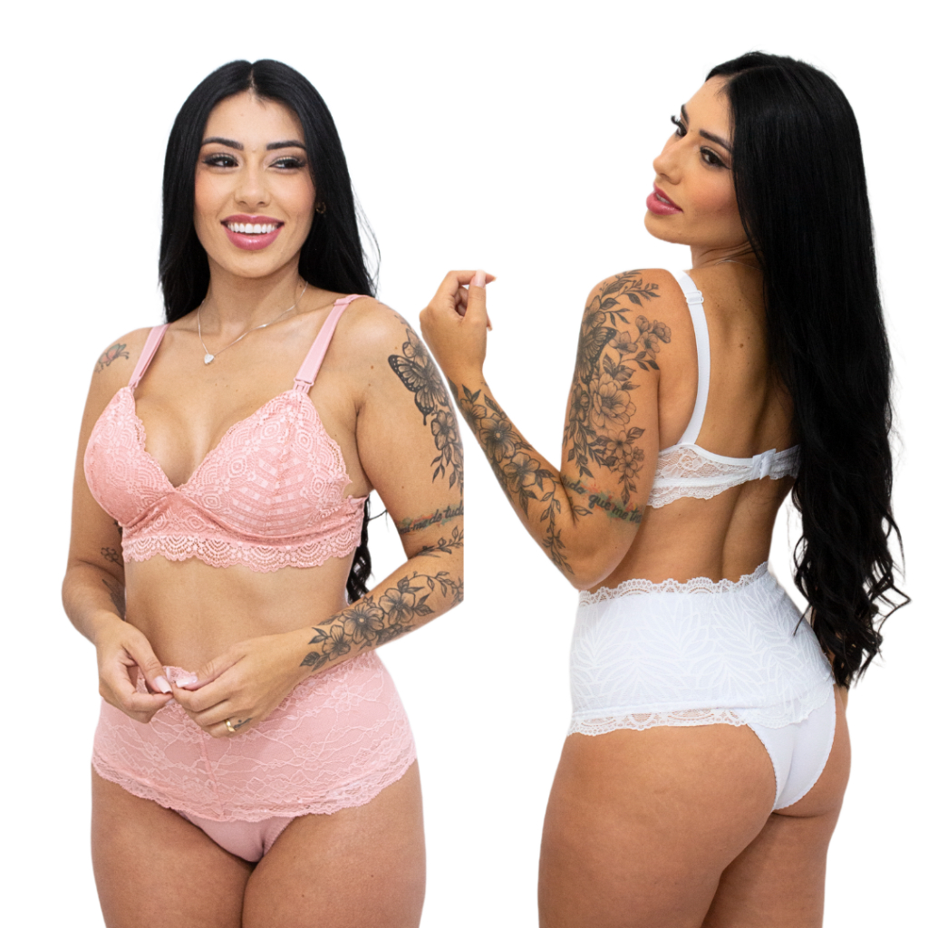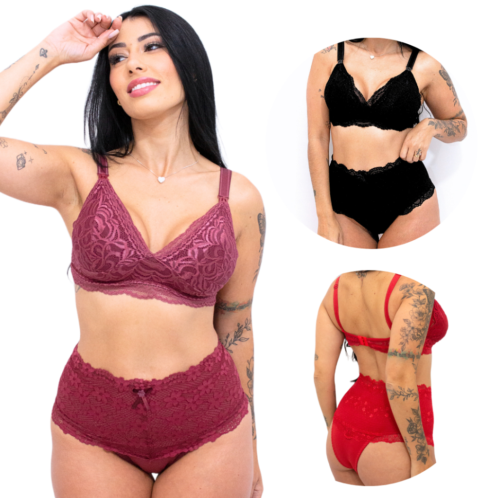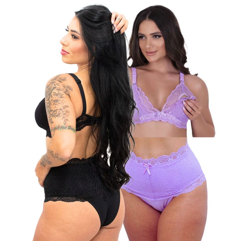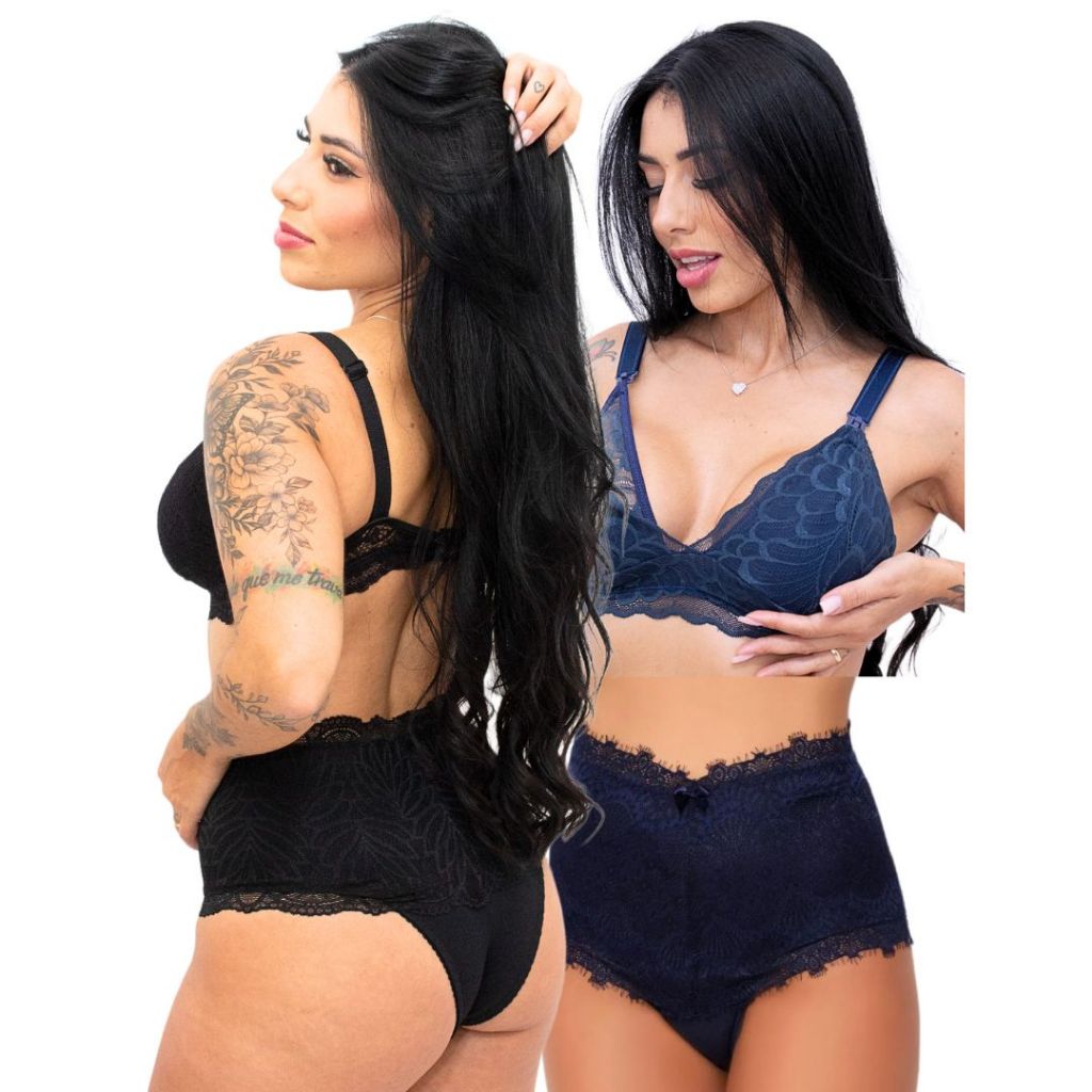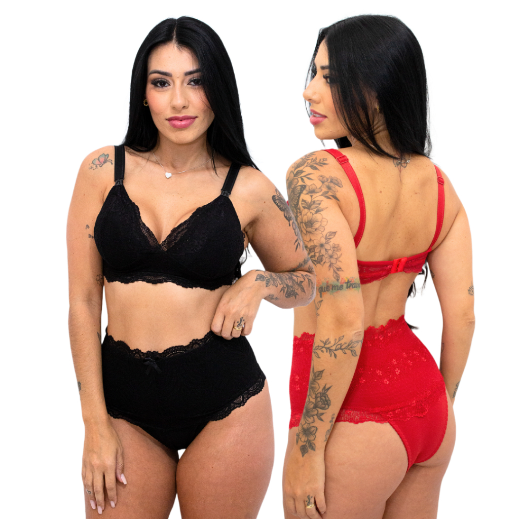 Kit 2 Conjuntos de Amamentação Pós Parto Feminino Plus size sutiã maternidade calcinha modeladora