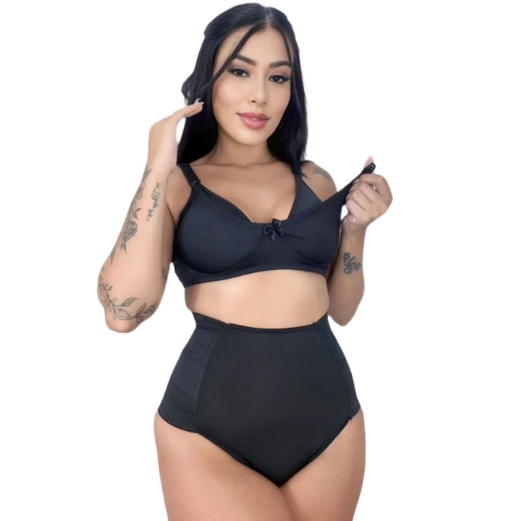 Kit 3 Conjunto Sutiã Amamentação + Calcinha Compressora Modeladora cós alto pós Cesária maternidade