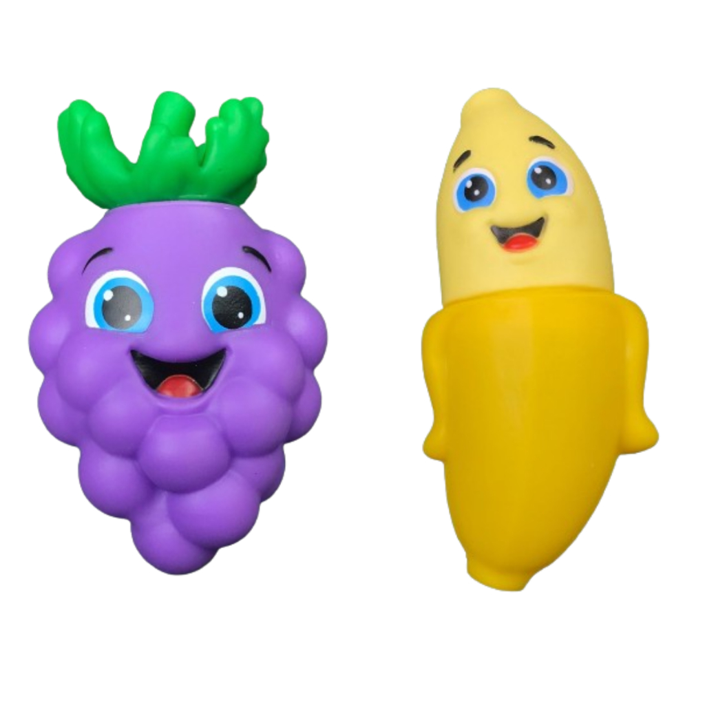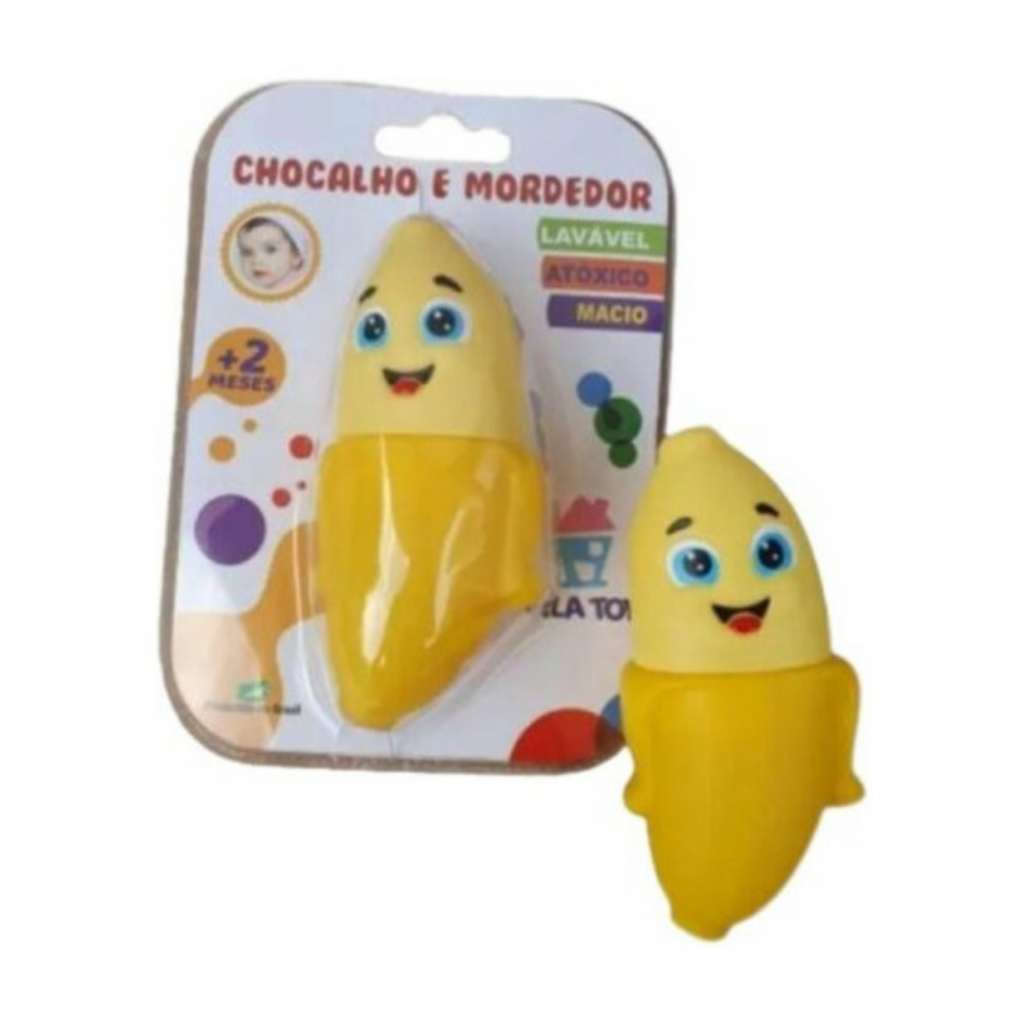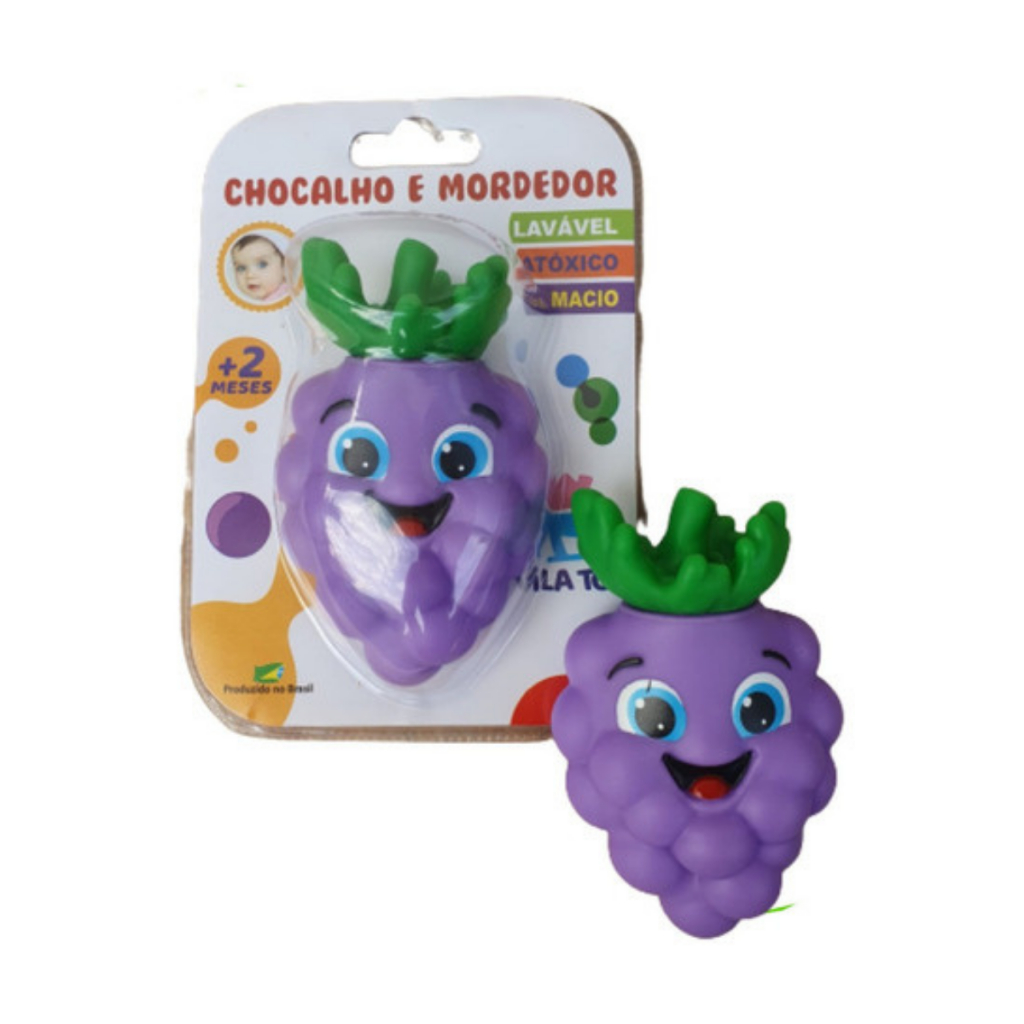 Kit Chocalho Mordedor Para Bebê Macio Barulho Suave Frutas Infantil Morango Uva Banana Dentição Gengiva
