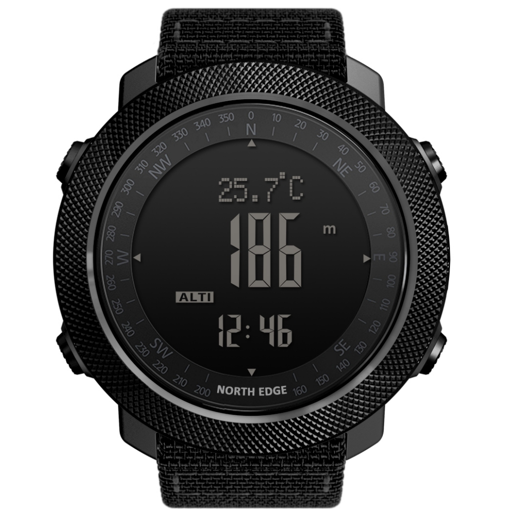 North Edge Apache Relógio Esportivo Exterior Para Homens Barômetro Altímetro 50m À Prova D'água Bússola Pedômetro Calorias Militares Relógios Do Exército nylon Preto 112g