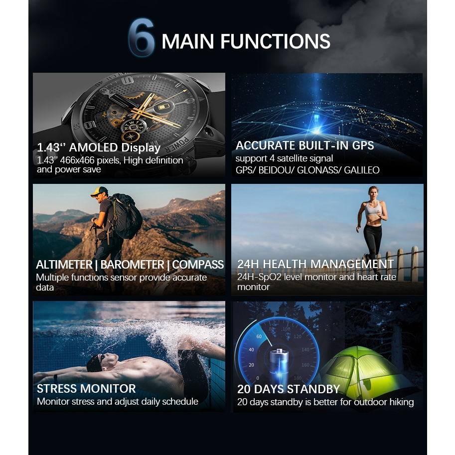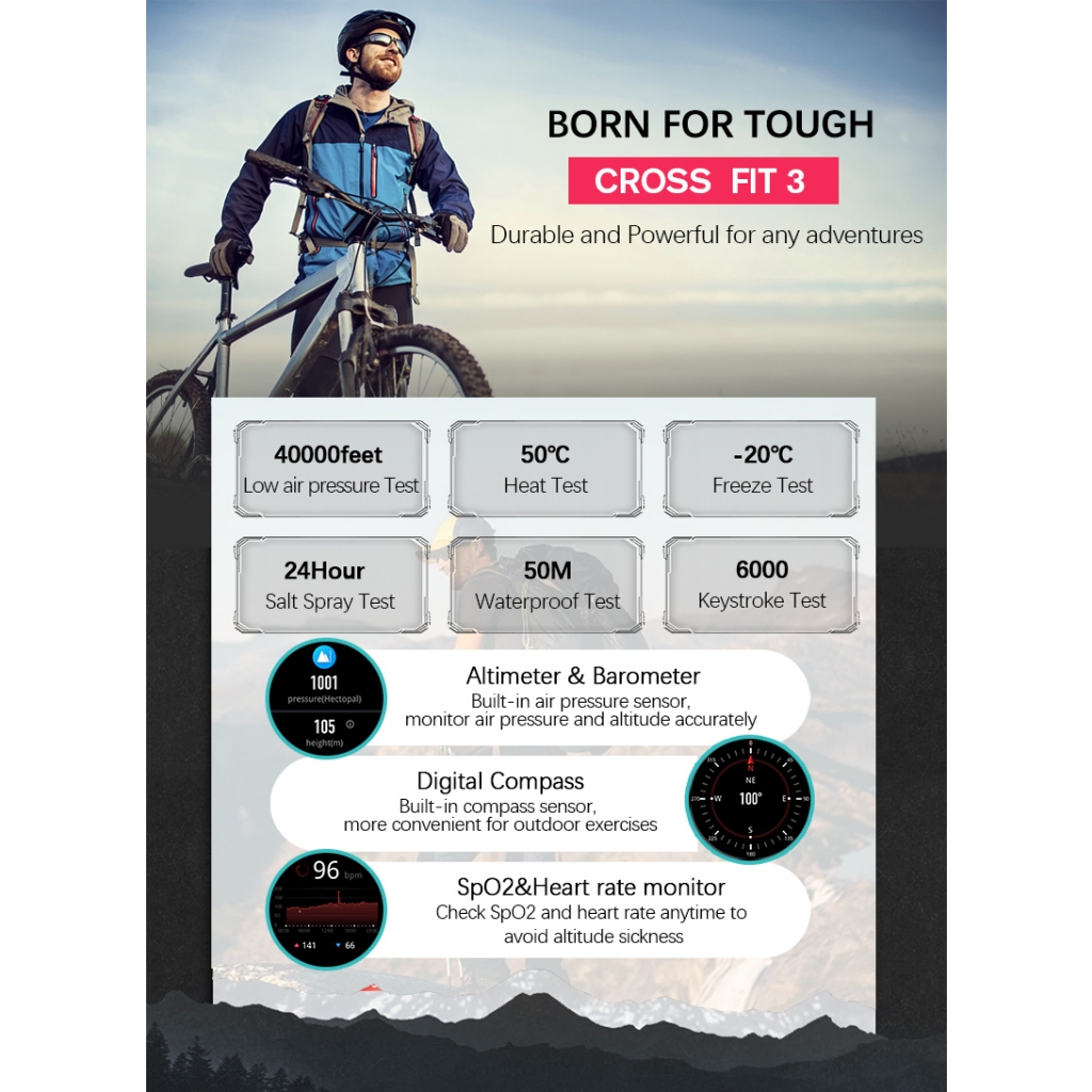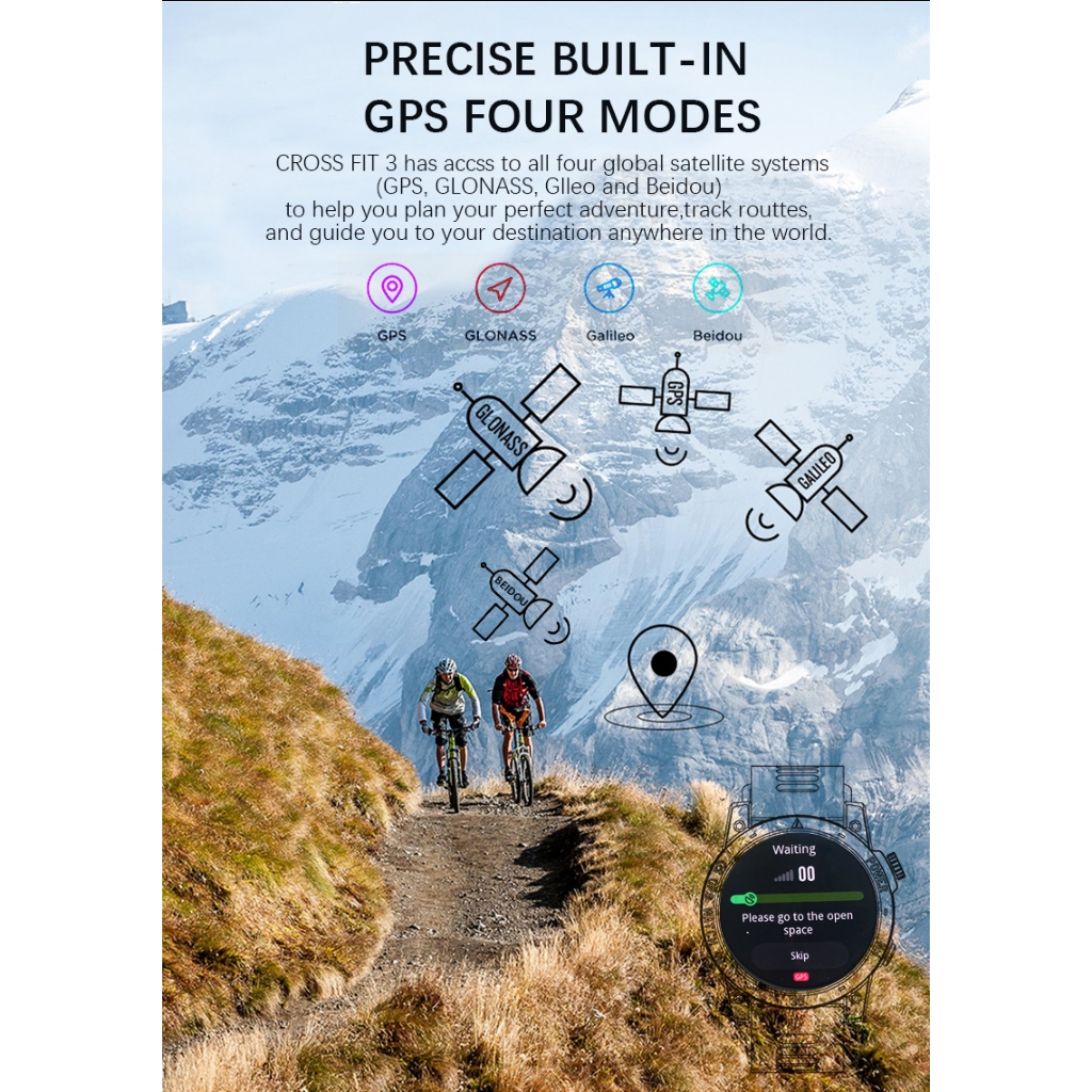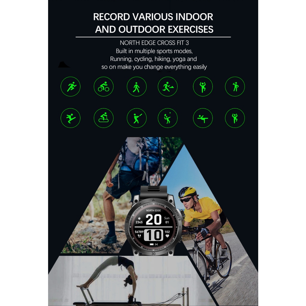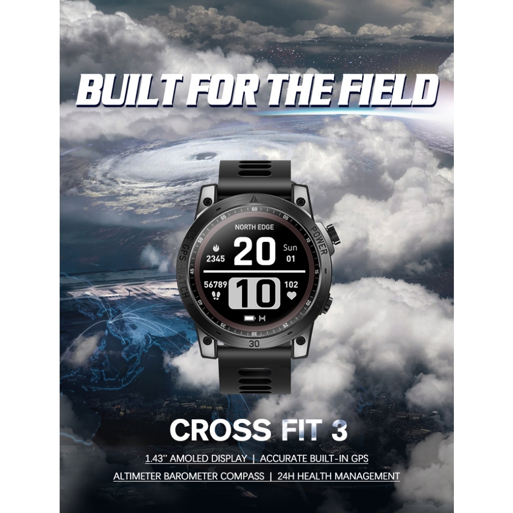 NORTH EDGE CROSS FIT3 1.43 Polegadas Tela Movida Gps Altímetro De Bússola Oxigênio Para Esportes Ao Ar Livre Smartwatch Relógio Inteligente De 50 Metros À Prova D'água 580 Milliampere
