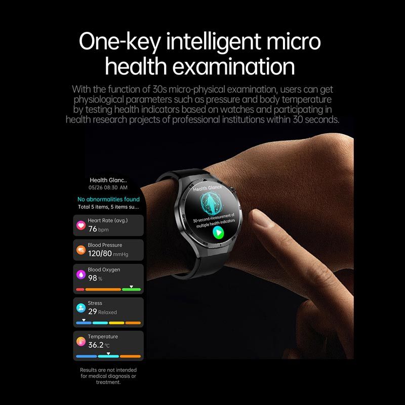 North EDGE ET456 Relógio inteligente saudável Tela AMOLED de 1.56 polegadas ECG Inspeção microfísica IP68 à prova d'água