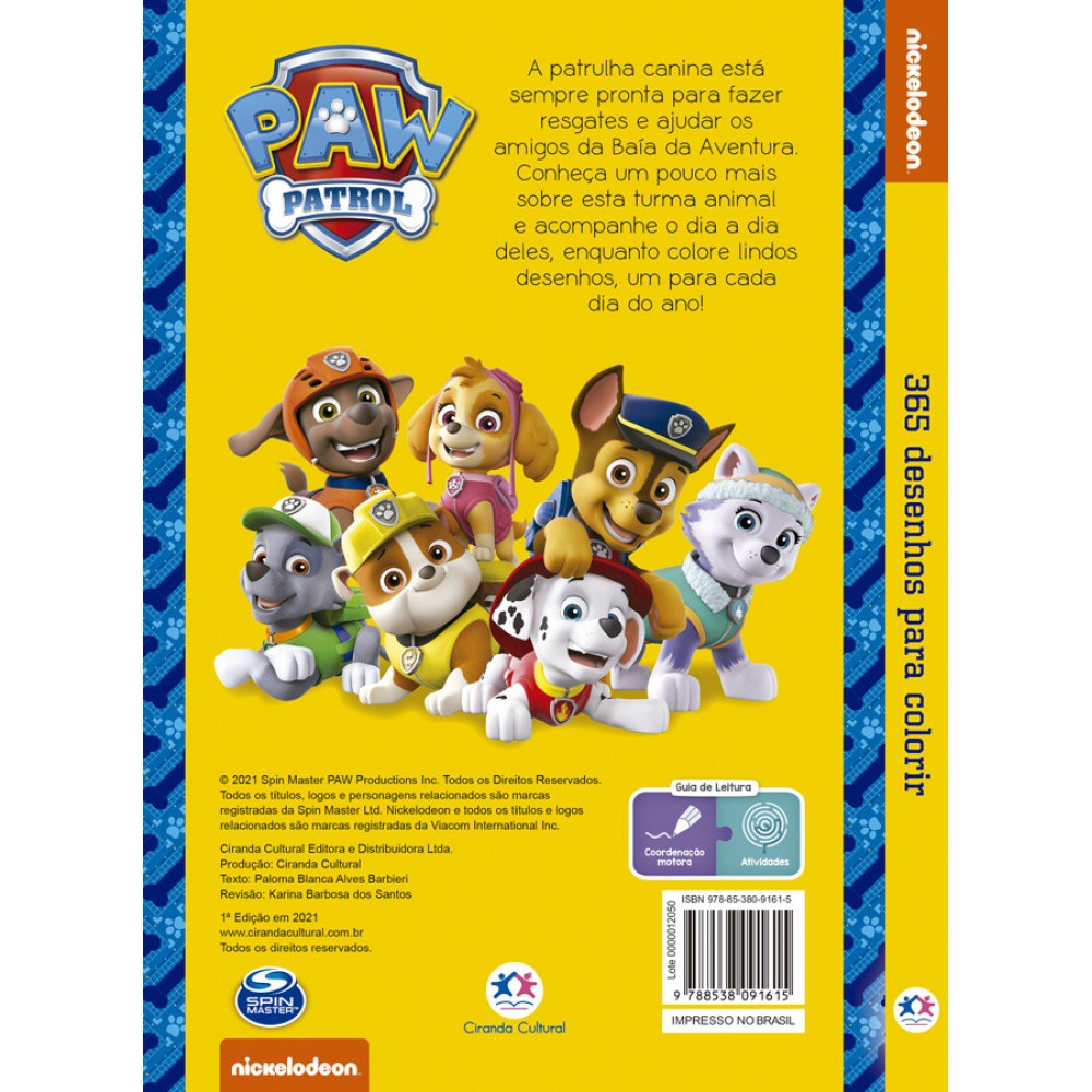 Livro - Patrulha Canina - 365 Desenhos para colorir - Capa comum - Ciranda Cultural