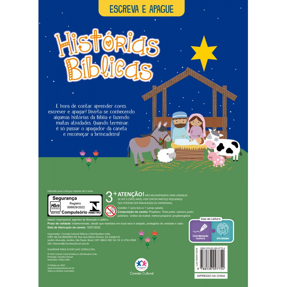 Livro Infantil Escreva e Apague- Histórias Bíblicas