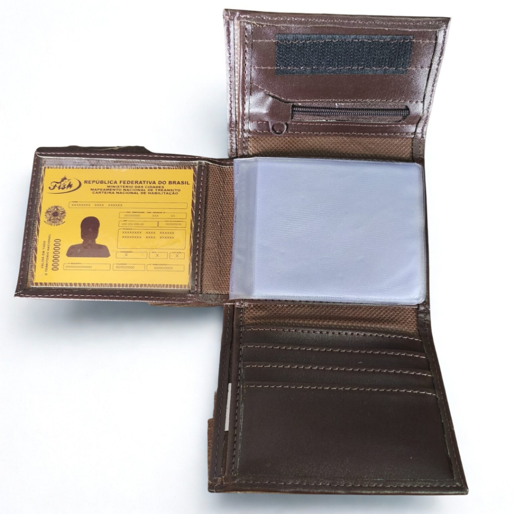Carteira Sintética ou Couro Masculina Velcro Compacta RG Cartões CNH Cédulas Moedas - Envio Imediato