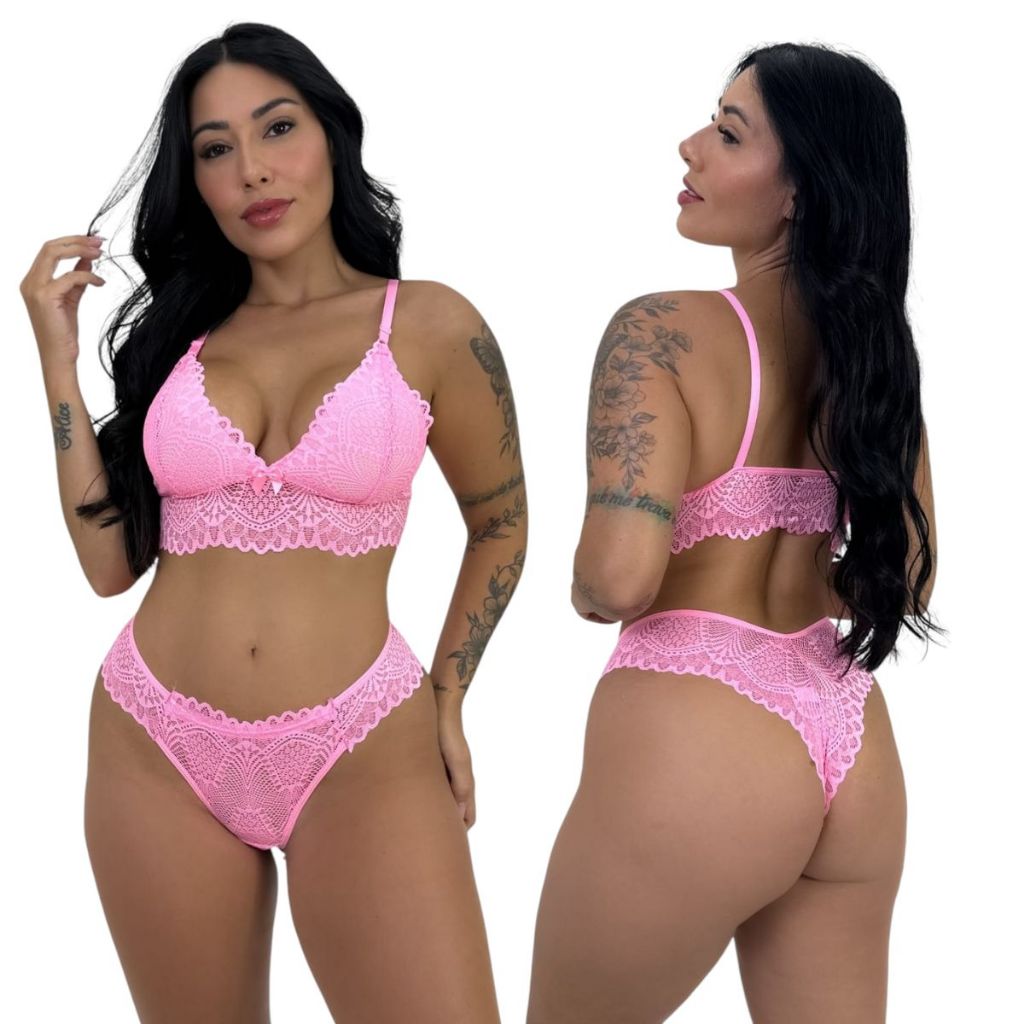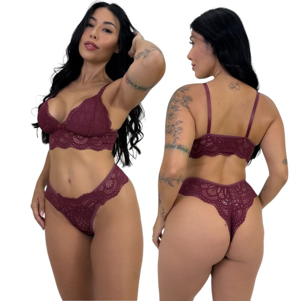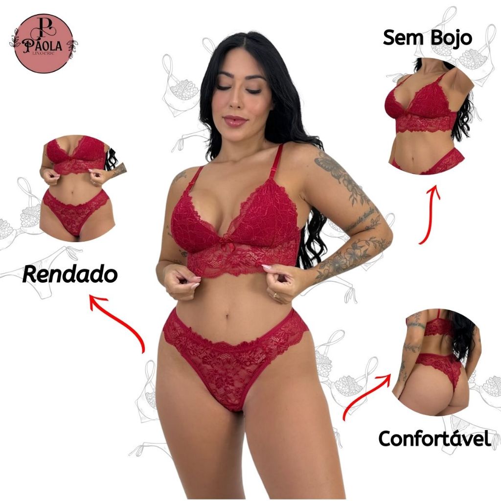 Conjunto Sem Bojo Rendada Confortável Lingerie Feminina Conforto Renda Calcinha Sutiã Moda Íntima