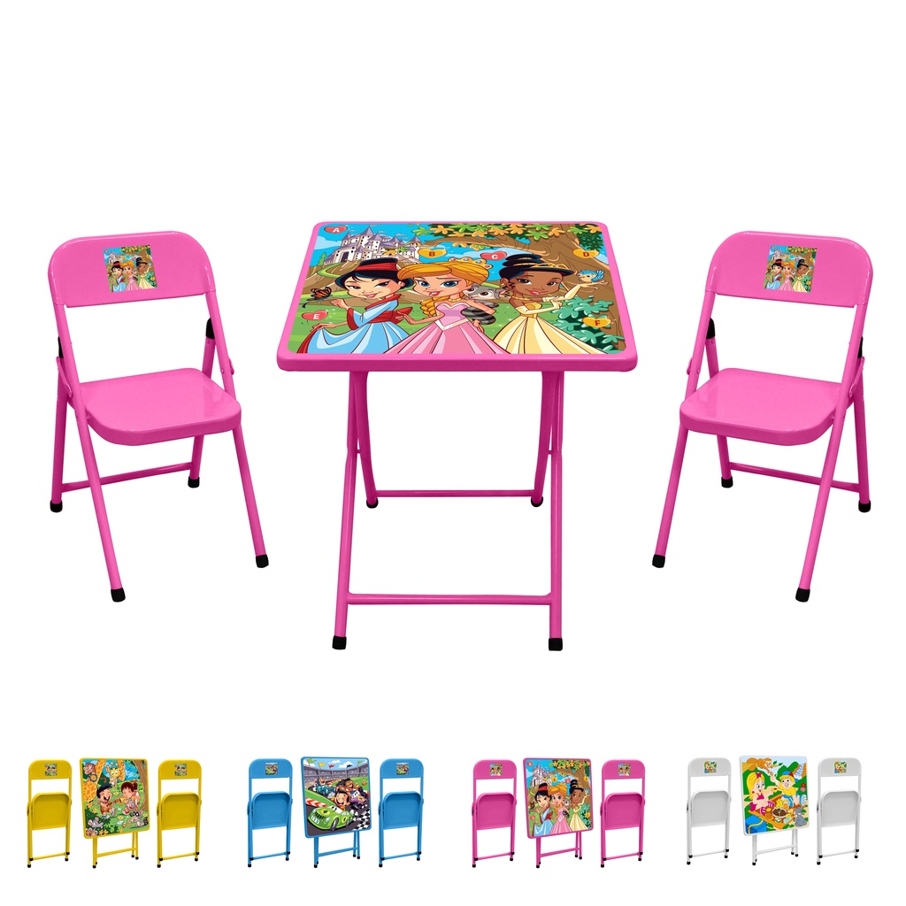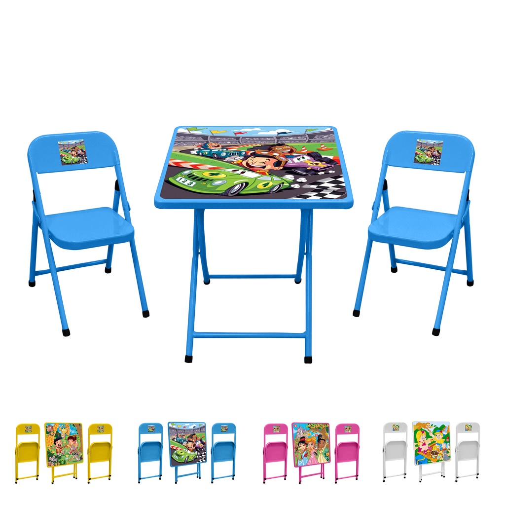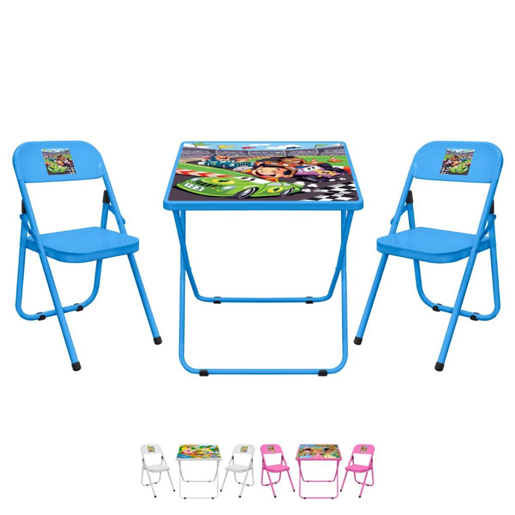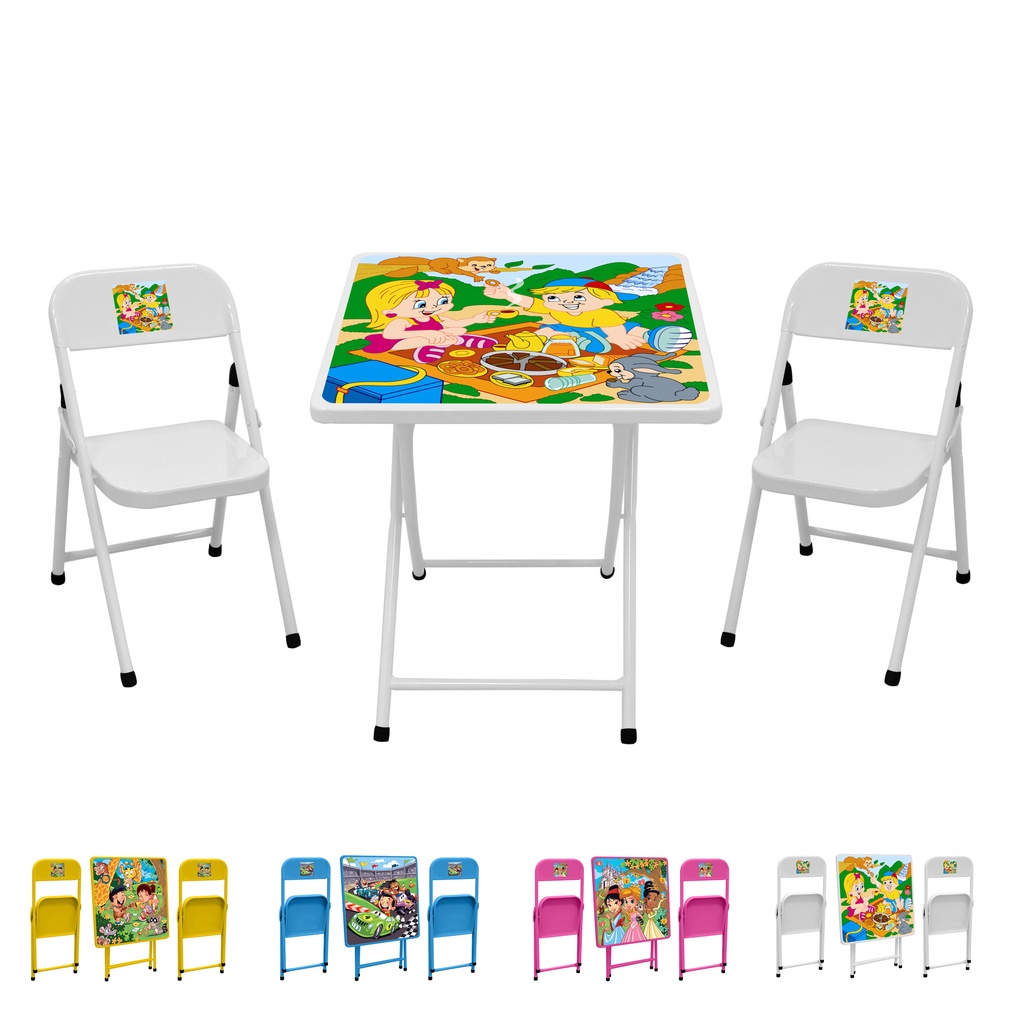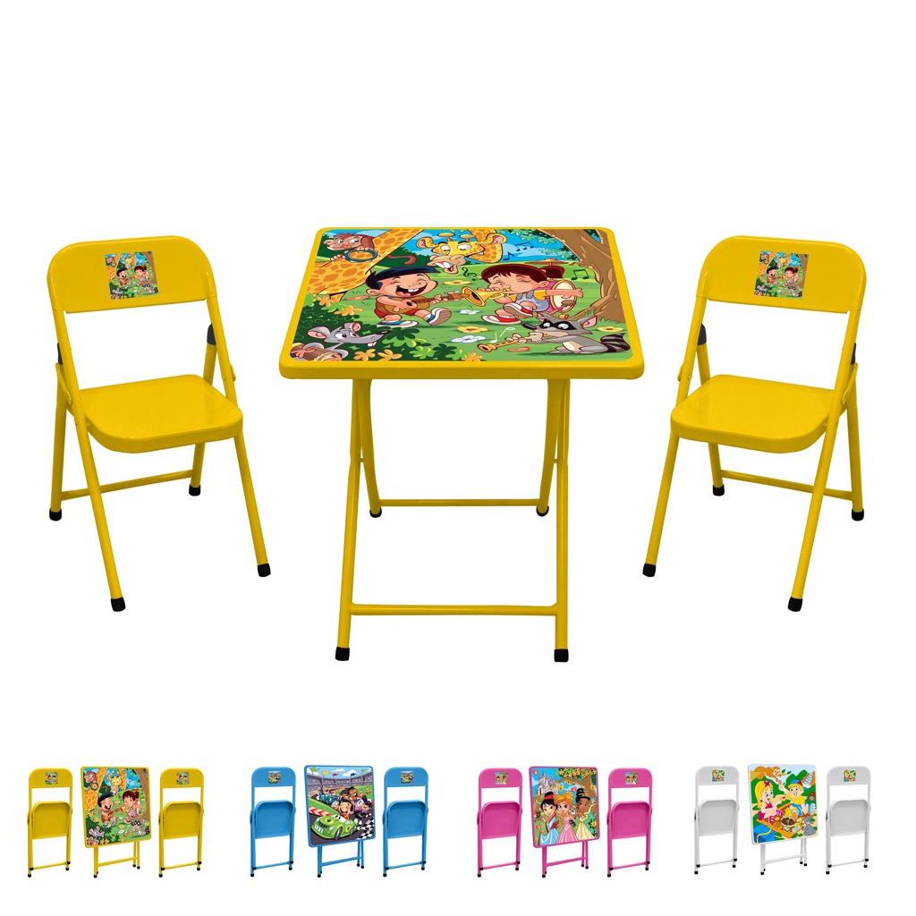 Conjunto De Mesa Infantil Com 2 Cadeiras Dobrável Aço Jogo