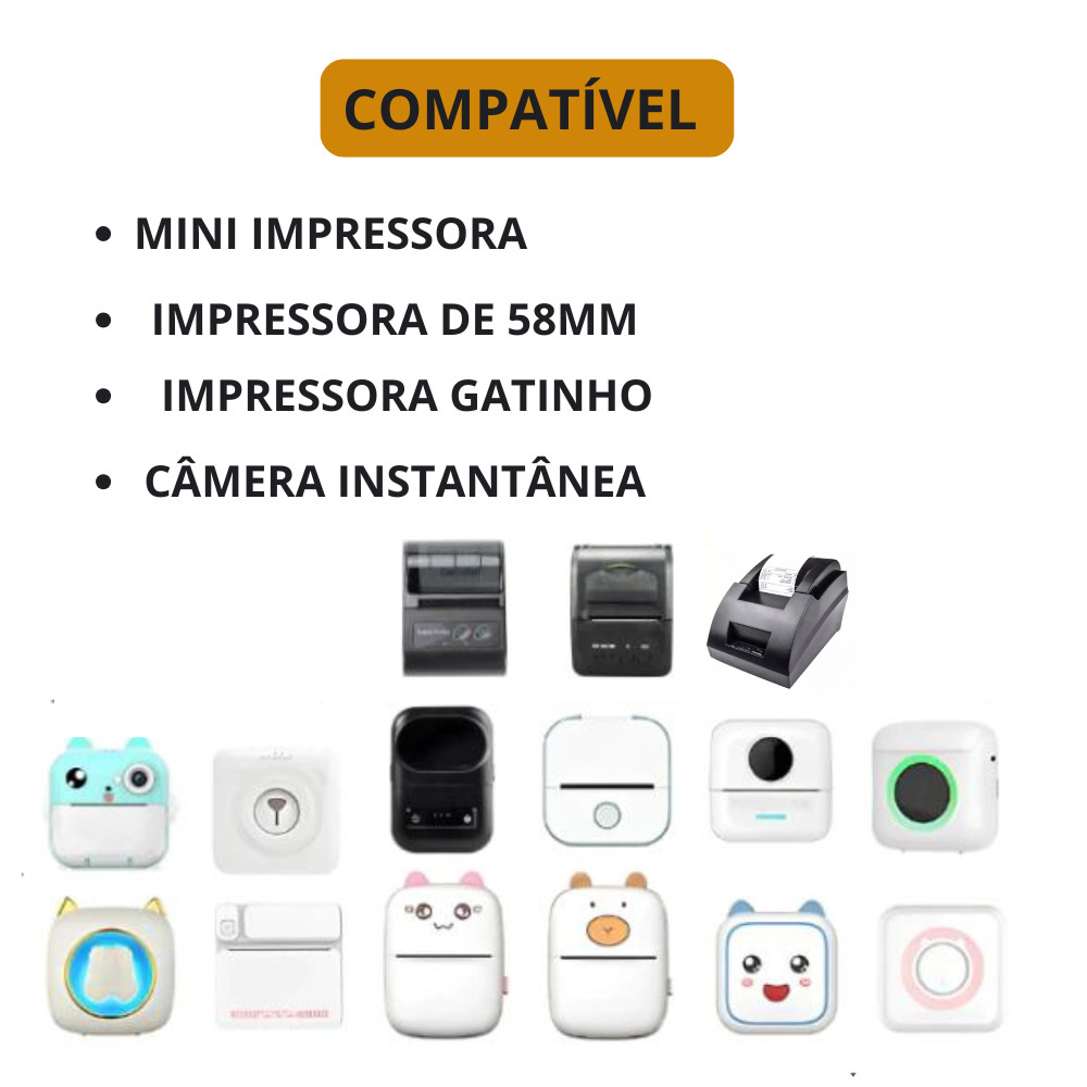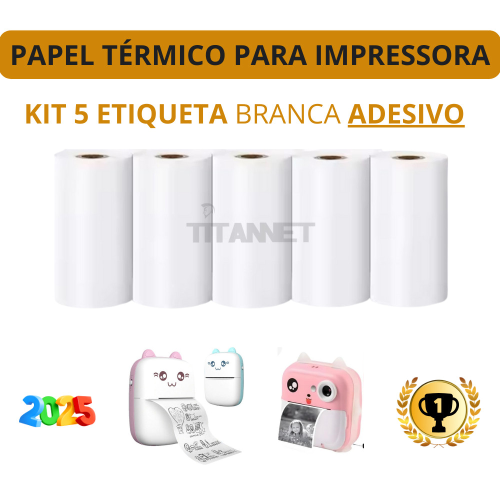 Kit Etiqueta Bobina Adesiva Para Mini Impressoras Gatinho - 5 Rolos