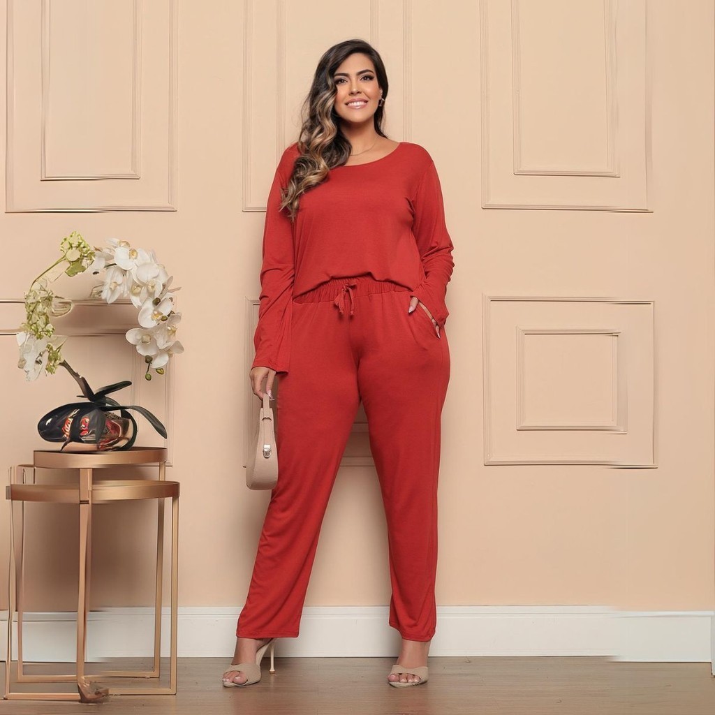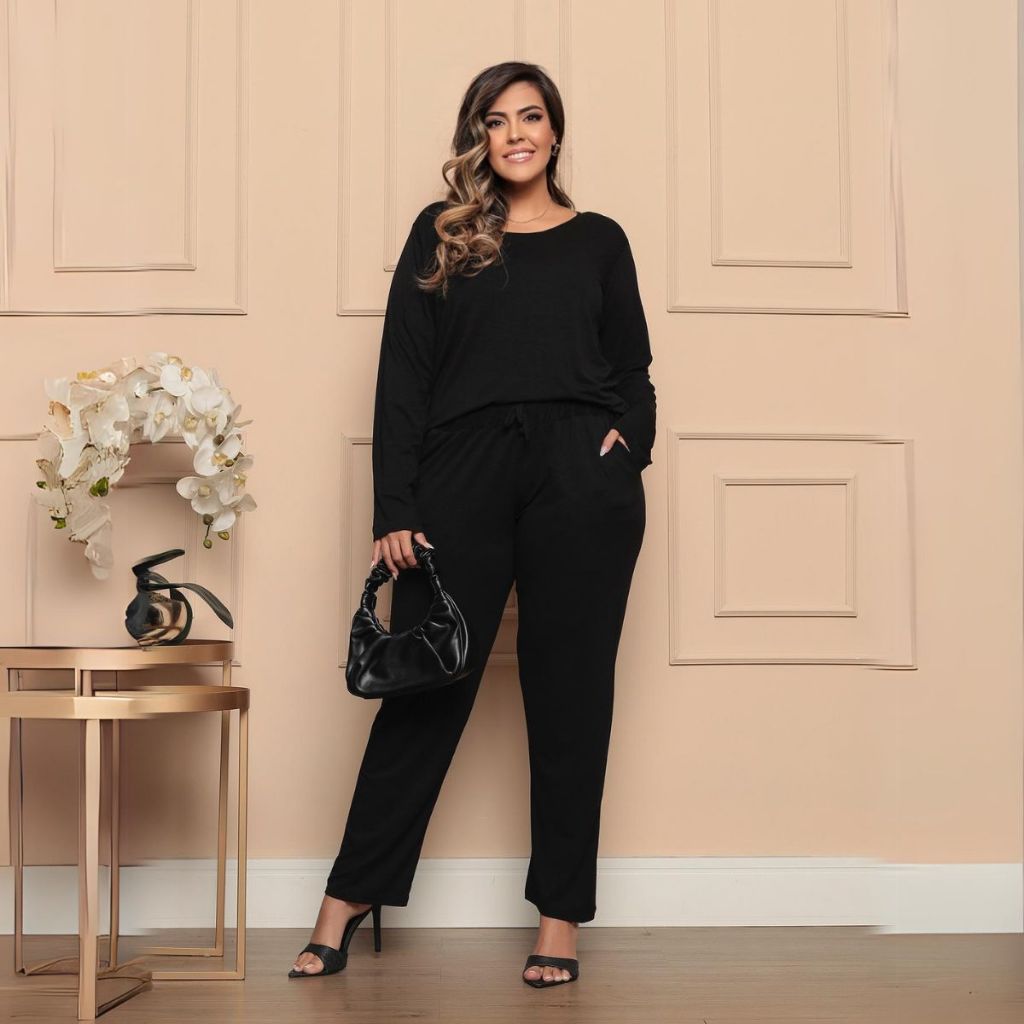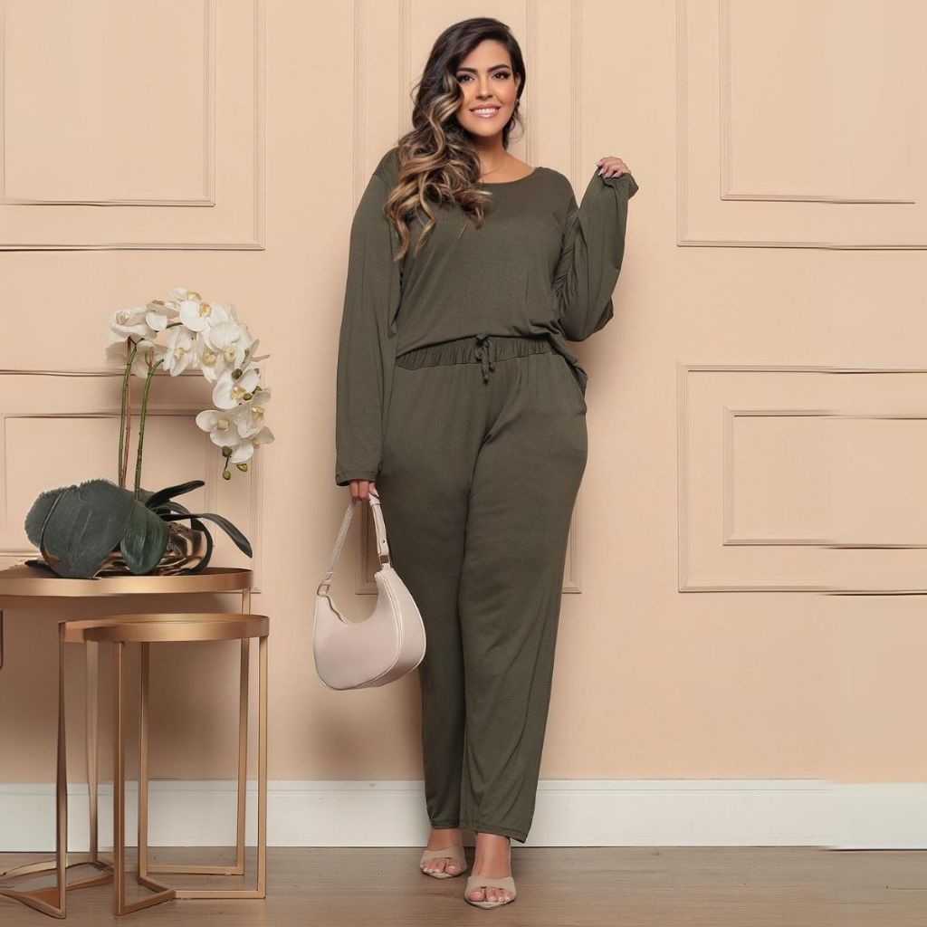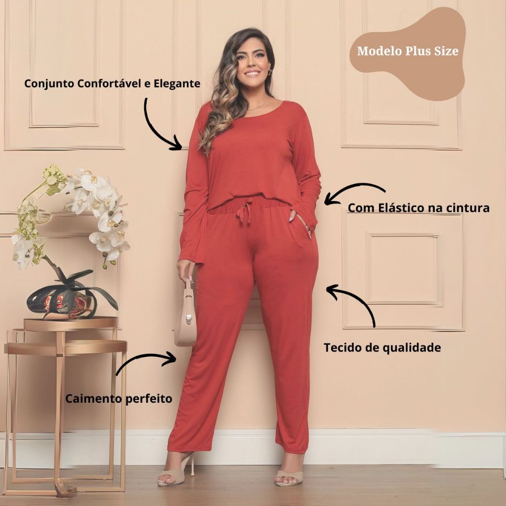 Conjunto Feminino Plus Size Moda Confortável Lisa Premium Moderno Luxo