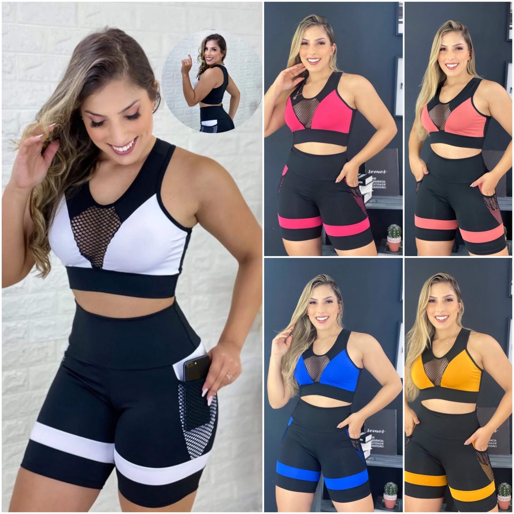 Conjunto Fitness academia bermuda + top Cores sortidas