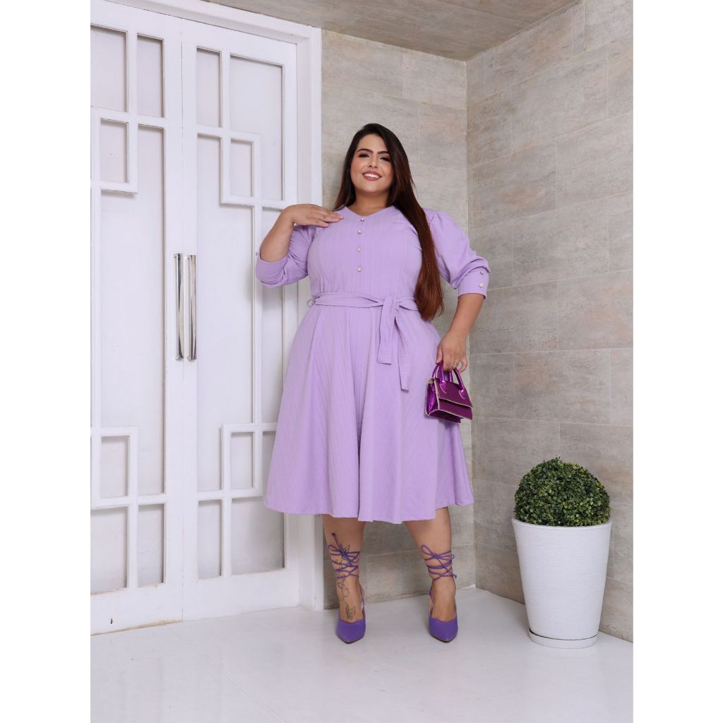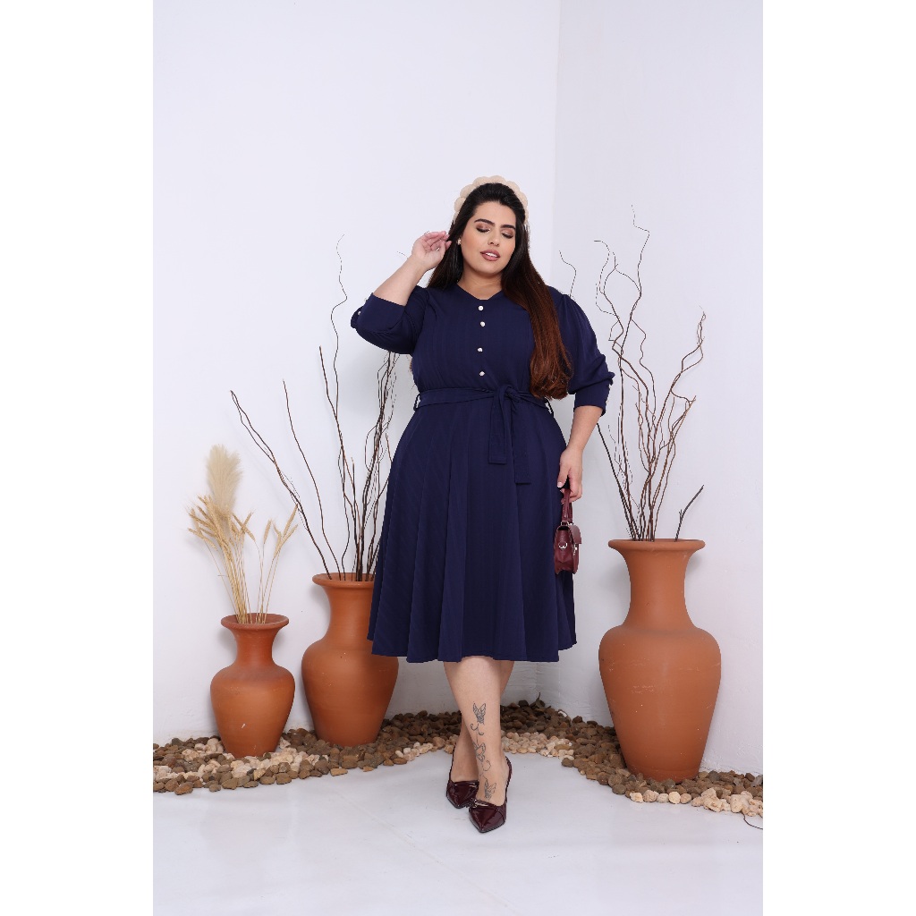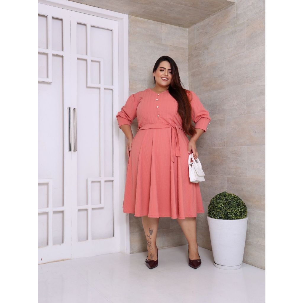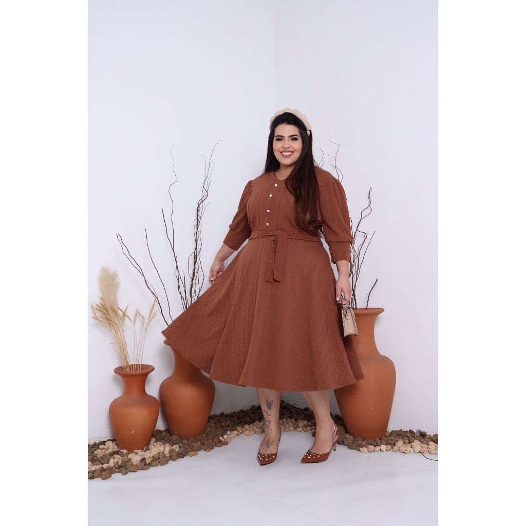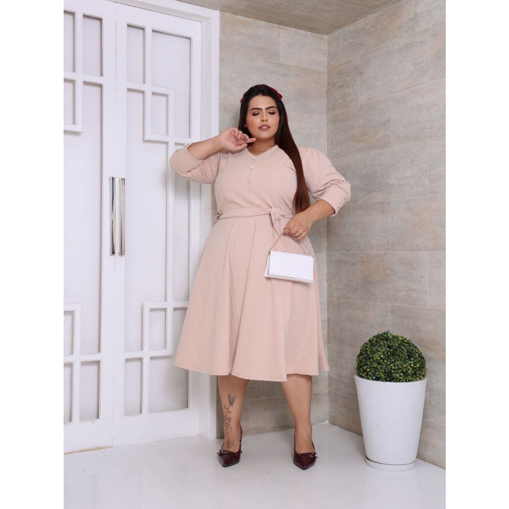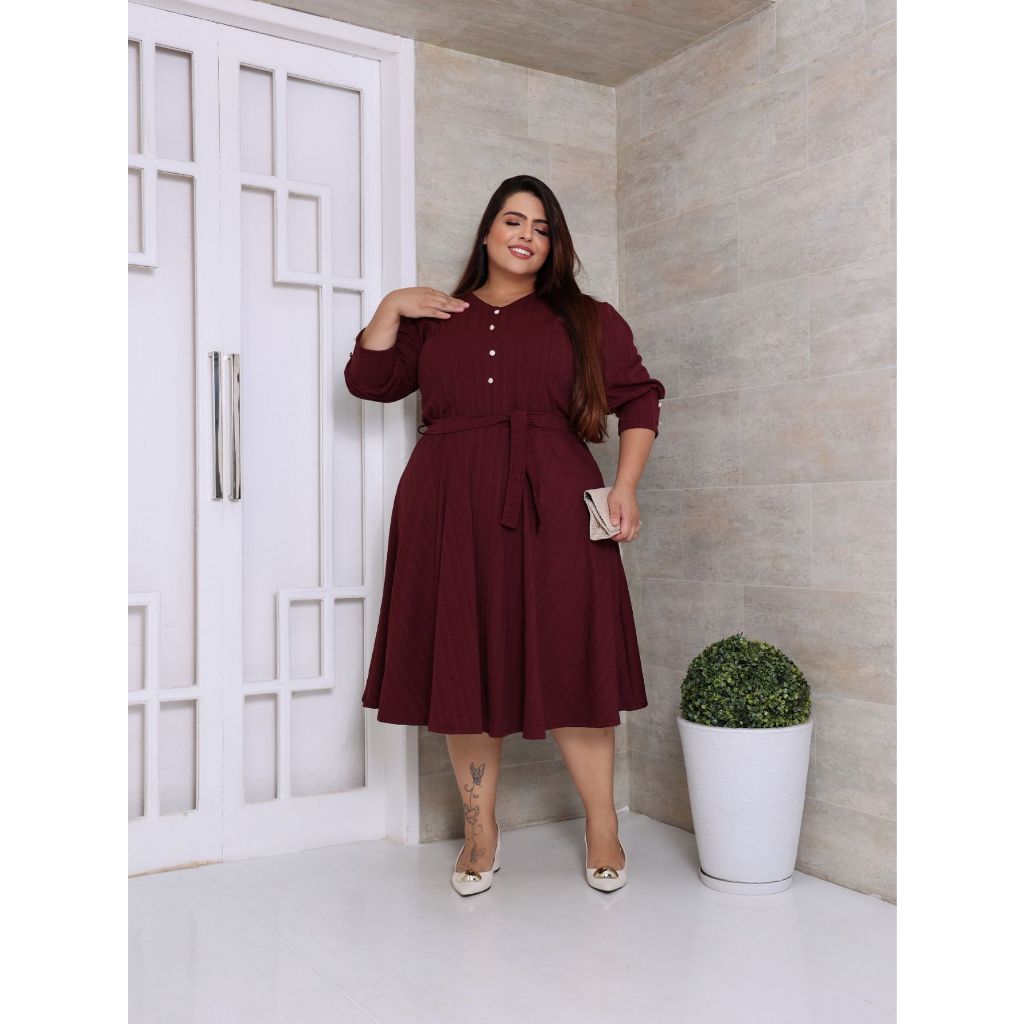 VESTIDO PLUS SIZE MIDI EM MALHA RIBANA PREMIUM MANGA 3/4 MODA EVANGELICA E FEMENINO