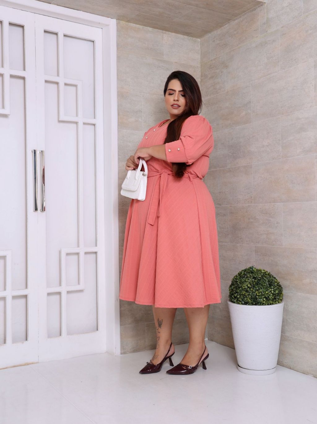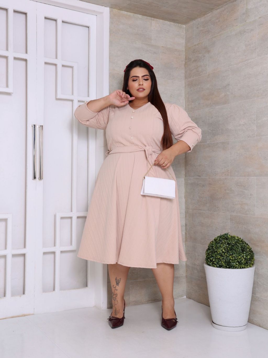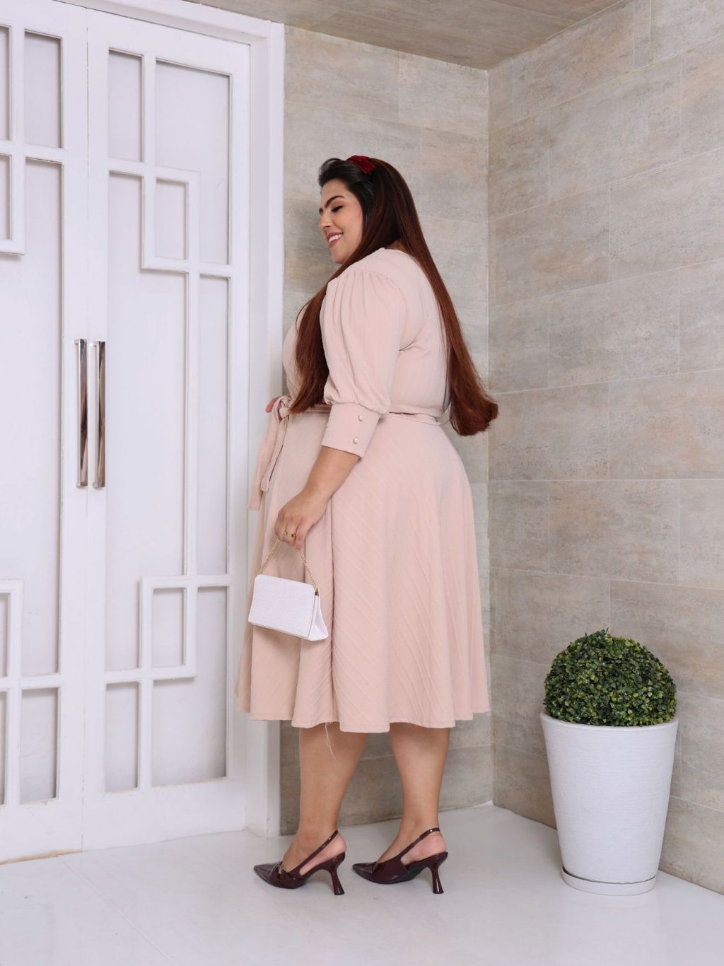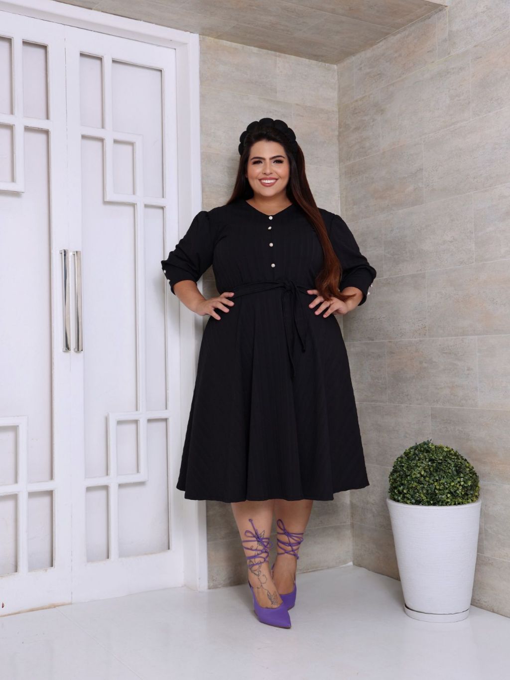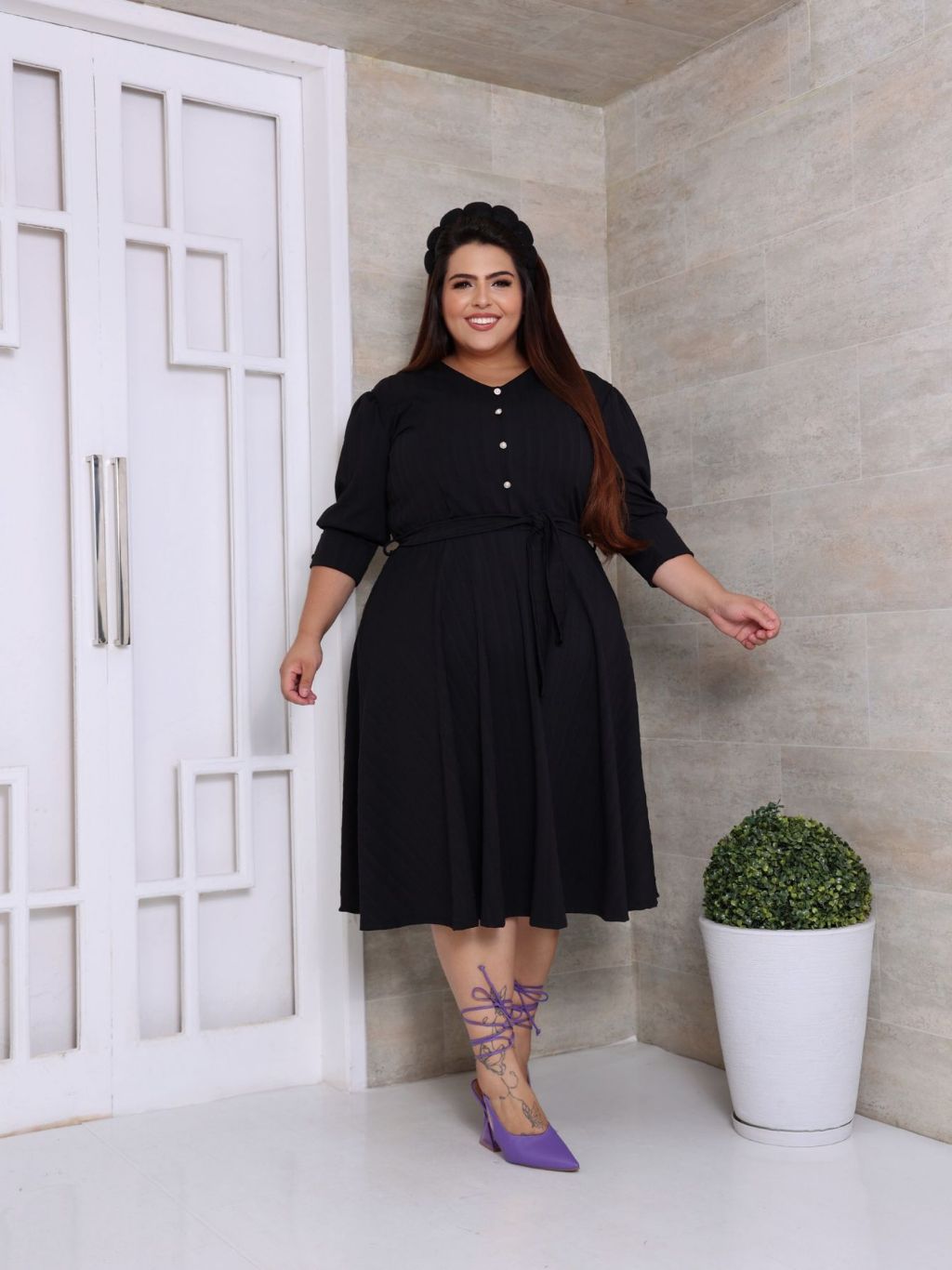 VESTIDO PLUS SIZE MIDI EM MALHA RIBANA PREMIUM MANGA 3/4 MODA EVANGELICA E FEMENINO